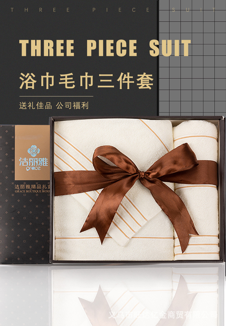 潔麗雅毛巾浴巾三件套禮盒純棉家用商務團購滿月結婚生日伴手禮品