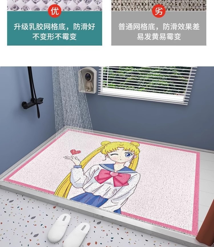 卡通水冰月洗澡防滑防摔腳墊浴室衛生間瀝水地墊可剪耐用絲圈軟墊