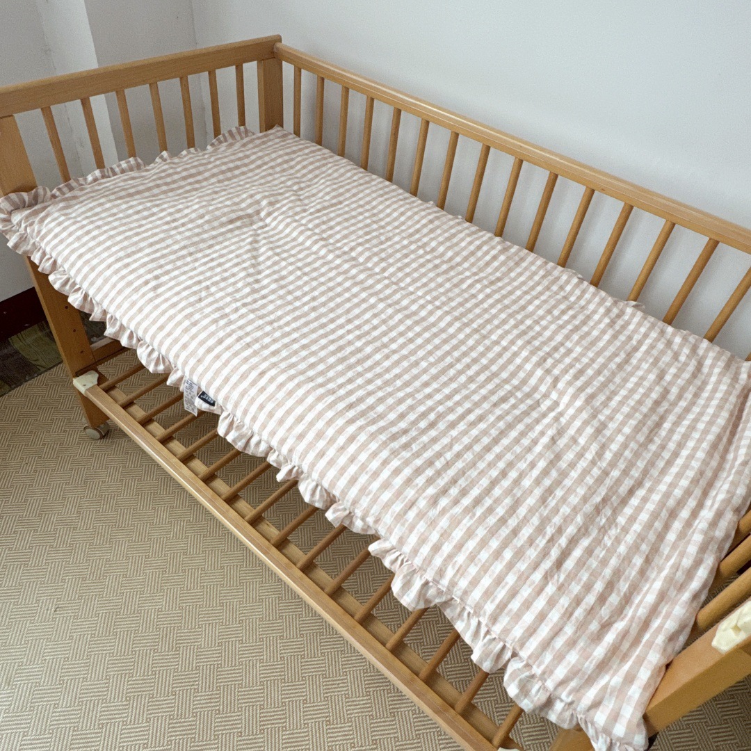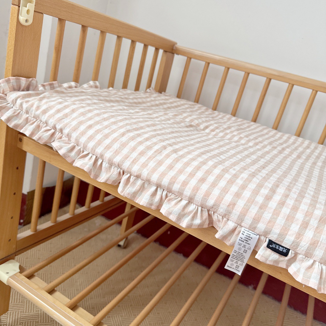 新生兒可用床褥,雙面可用,柔軟的手感,親膚,貼合性也好,面料不含熒光劑,可以整體機洗。墊褥是宜大不宜小,大-一點床的四周會更飽滿,