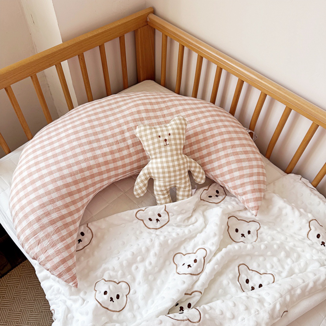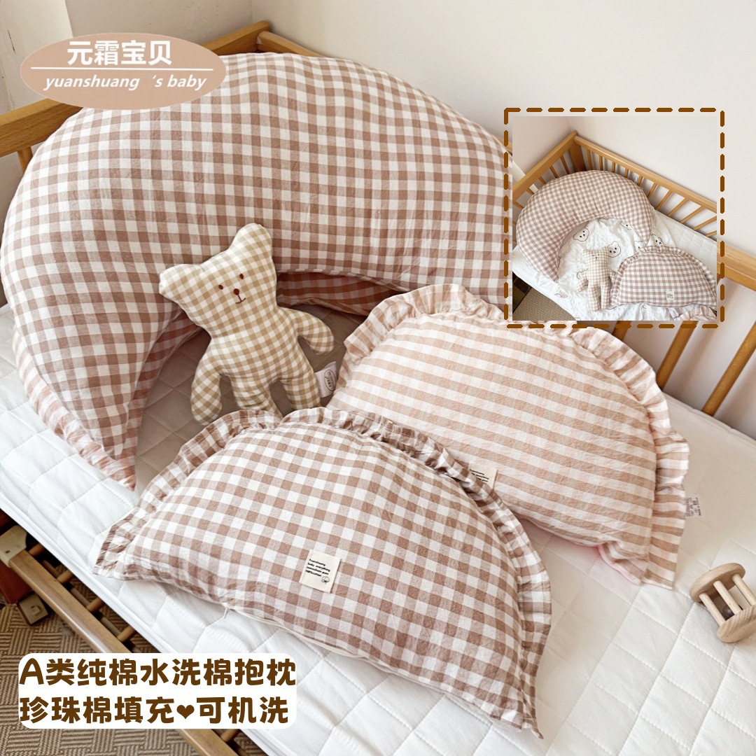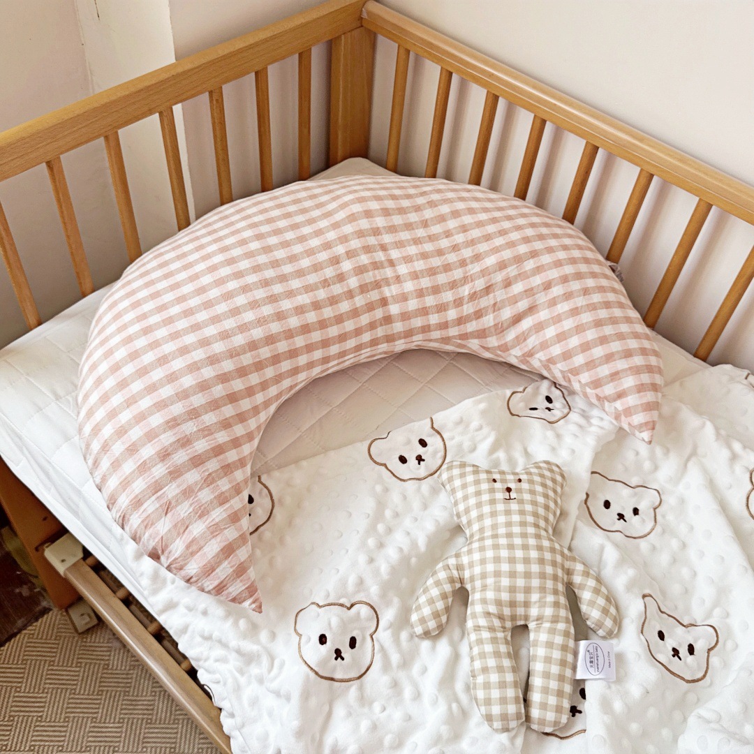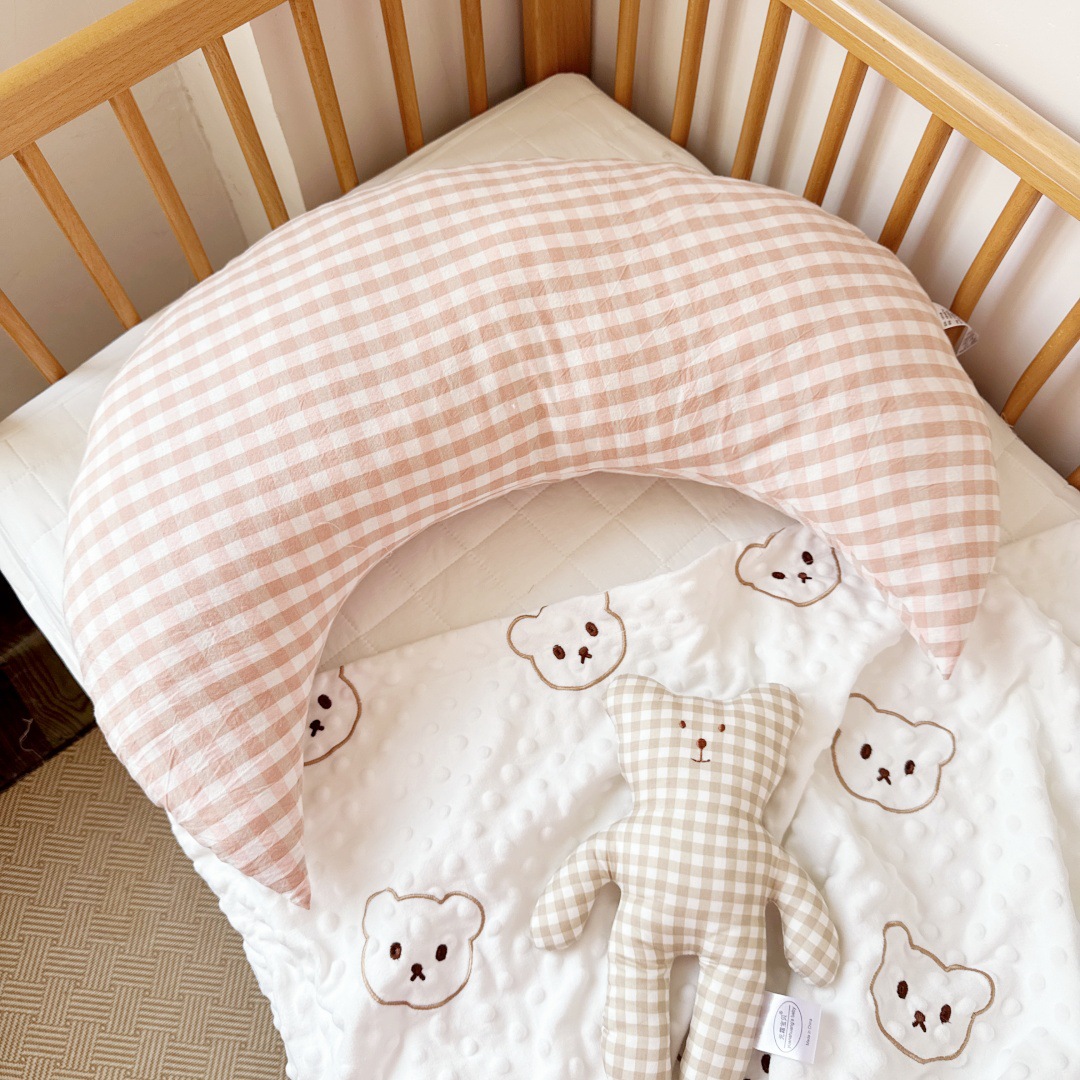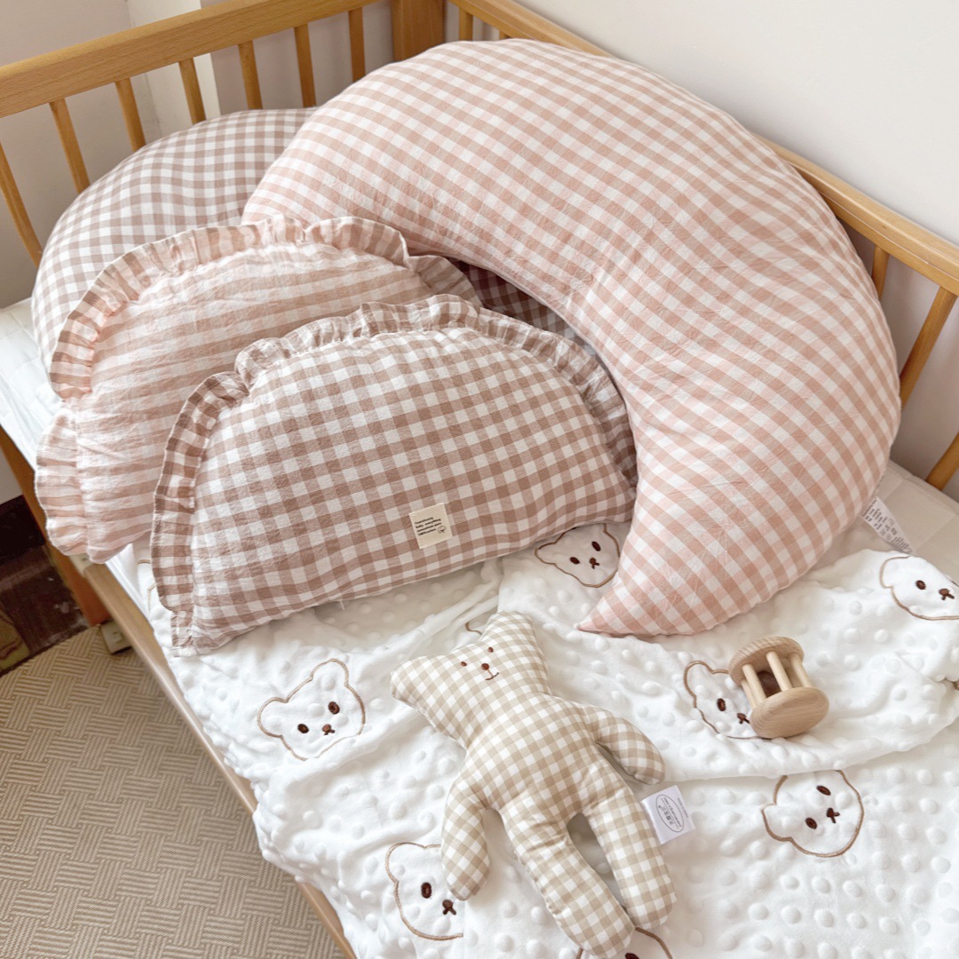 月亮枕尺寸大一些,大朋友也是完全可以用的,像我們生完寶寶會腰痛,所以放在腰部,可以有撐托作用,也可以小寶寶做背部支撐用。