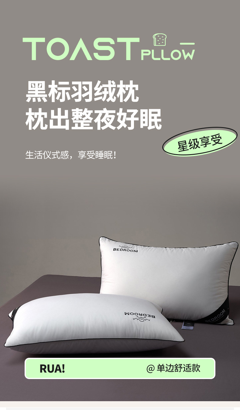 黑標羽絨枕立體款-高枕-枕芯高度:16-18cm / 使用高度:9-10cm