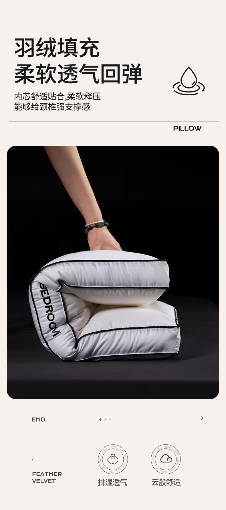 黑標羽絨枕立體款-低枕-枕芯高度:14-16cm / 使用高度:7-8cm
