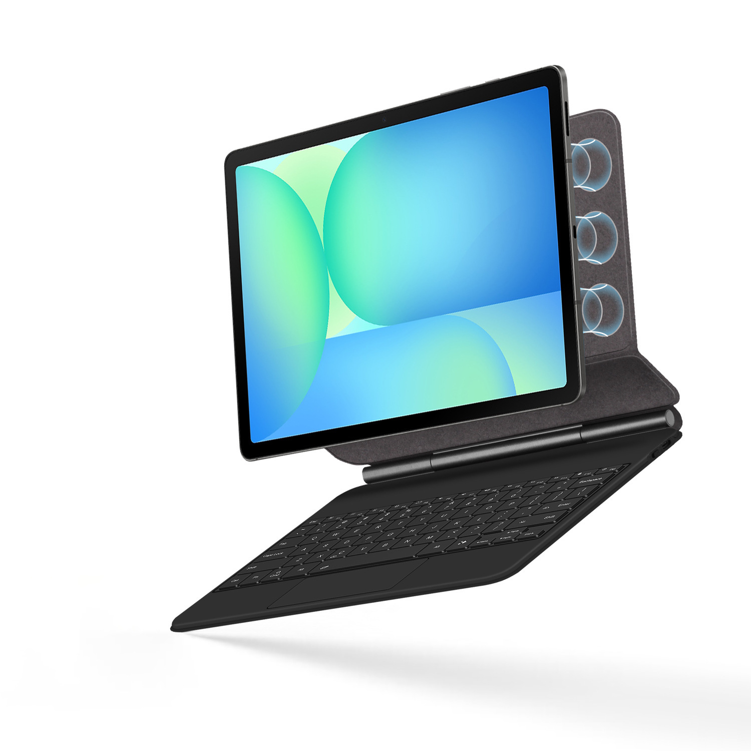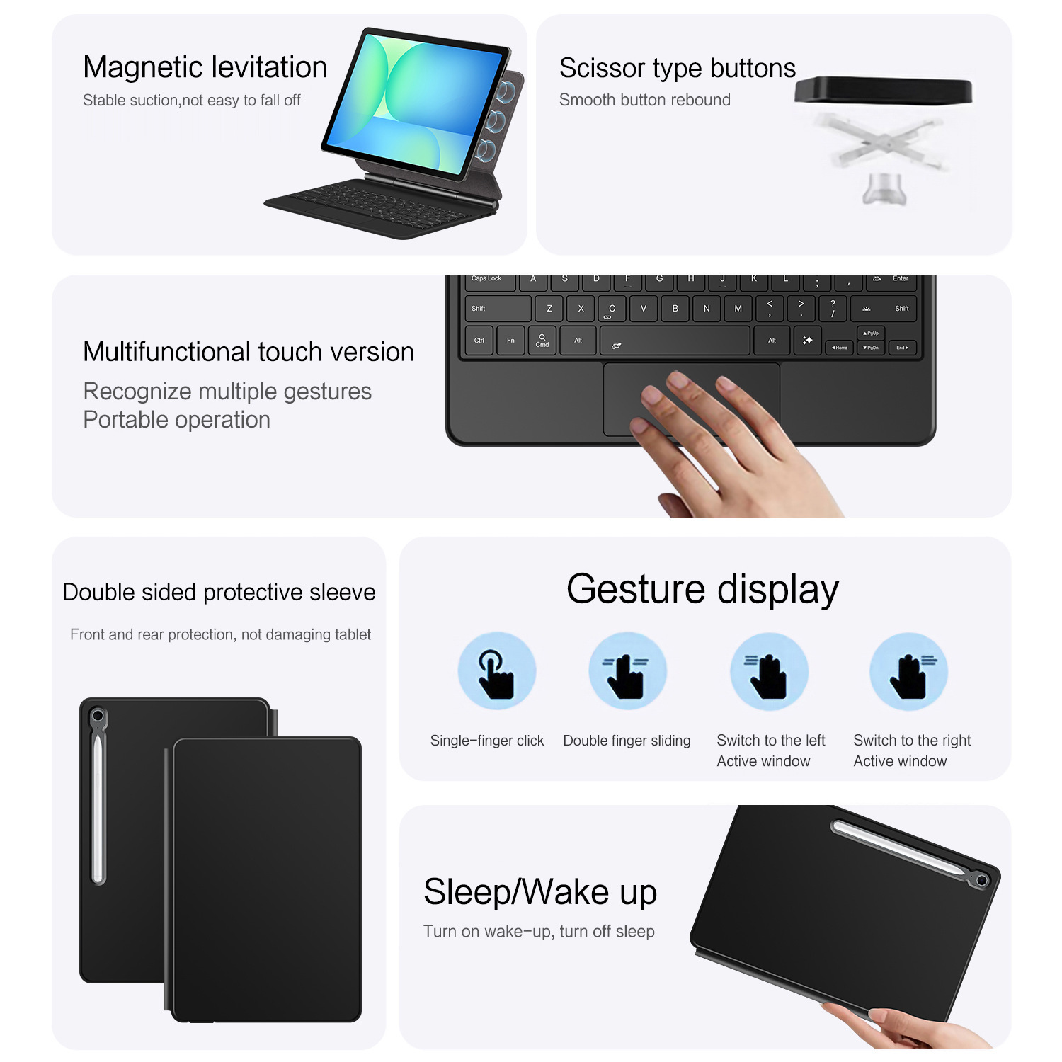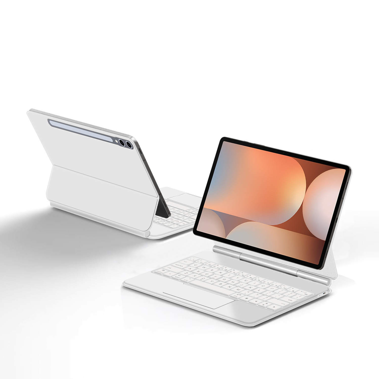 【工廠私模,歡迎定制,三星平板 妙控鍵盤,雙面貼皮,觸控,七彩背光】