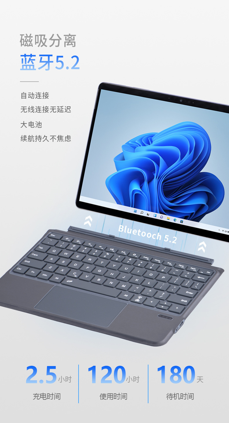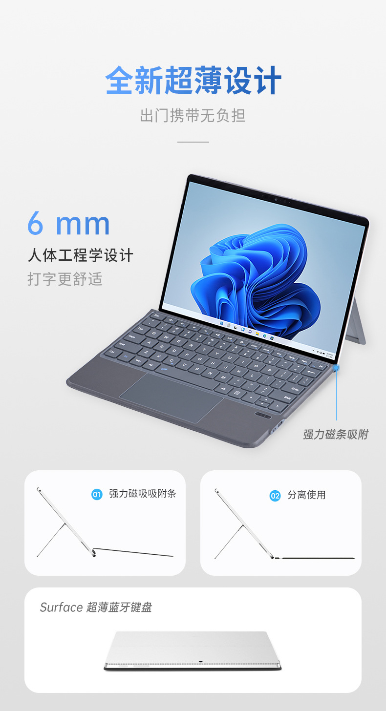 適用微軟surface go藍牙鍵盤6排加大發光藍牙鍵盤