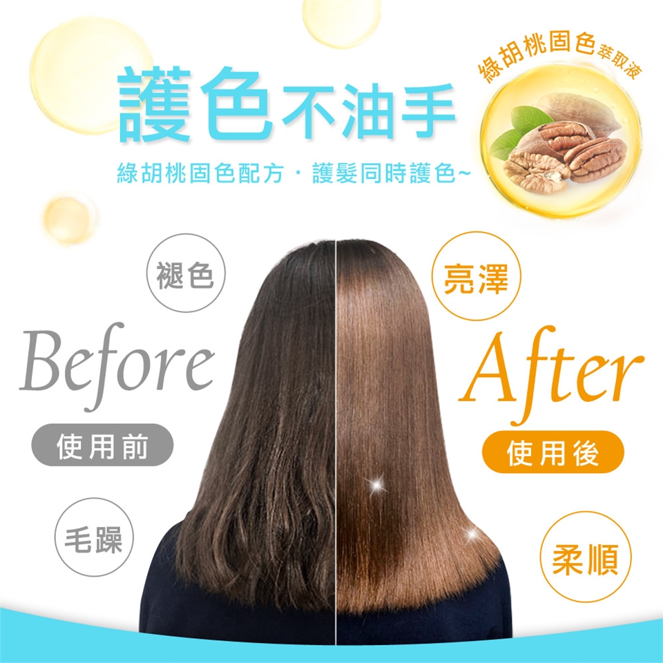 用途:可於頭髮染、燙之後作為加強保養使用。
