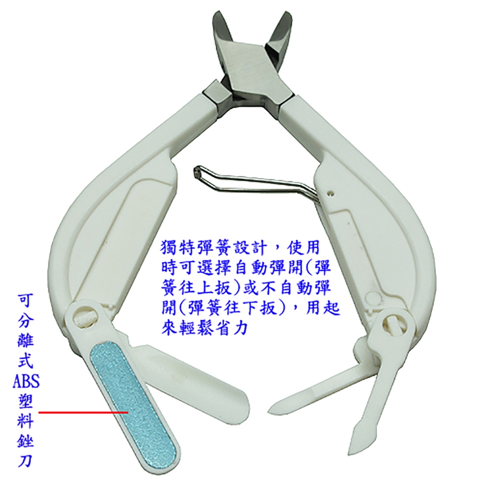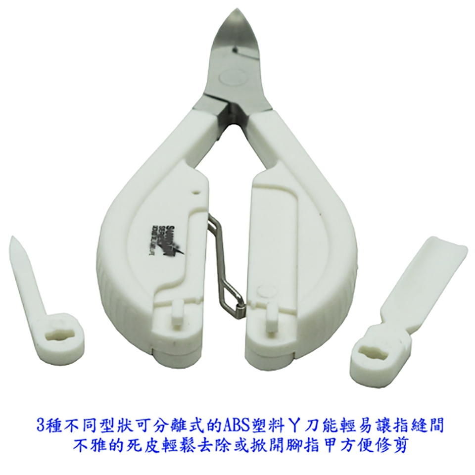 ■3種不同型狀可分離式的ABS塑料ㄚ刀能輕易讓指縫間不雅的死皮輕鬆去除或掀開腳指甲方便修剪。