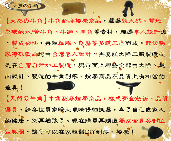 ■因採用純天然牛角材質,非塑料製成,因此每個牛角製品的花色、紋路都不一定相同。