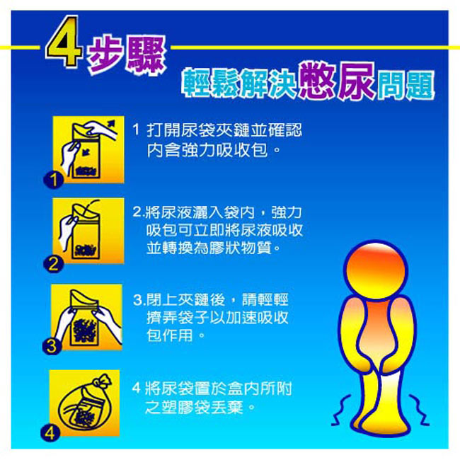在此提供您最新產品"小便利尿袋",在最緊急狀況時當您的超級救星,不管是大人、小孩、男女老少通通適用,讓您在不便下車之時也無後顧之憂囉!!!