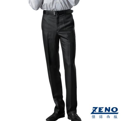 ZENO傑諾 厚暖刷毛條紋平面西裝褲‧黑色