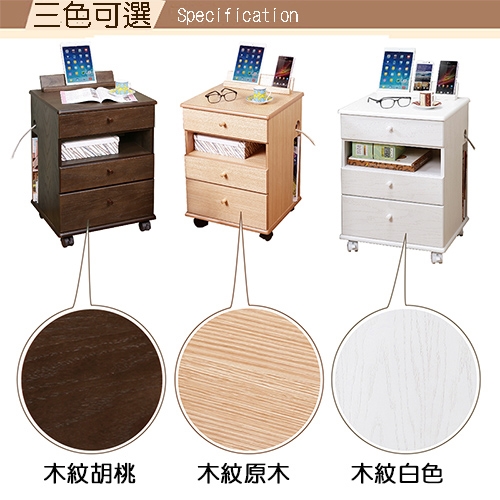 此外後方側面也設計有左右互通的雜誌架,讓本商品就像個百寶櫃一樣收納力驚人,把它當成床頭櫃、桌邊櫃、雜誌架等都很合適,底下有活動輪的設計讓您移動方便,前面兩個輪子具煞車功能,都是極為體貼的設計,居家的空間裡擺設此收納櫃,增加了現代和風的氛圍,這個優質好用又具設計感的收納櫃,也值得向您推薦!