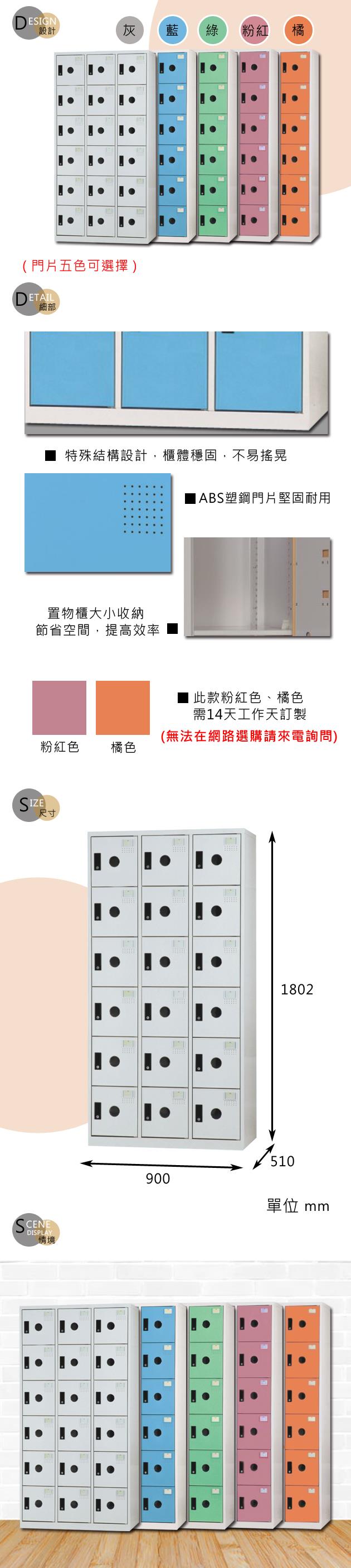【時尚屋】[RU6]萊斯特多用途塑鋼製18格置物櫃,色系以灰、綠、藍、粉紅、橘色為主,材質上採用ABS塑鋼門片等,均高於市場之產品規格,品質絕對有保證!此置物櫃在收納空間上採用單開門,設計質感及耐用性絕對是首選。有了他絕對可以讓您煥然一新!時尚屋帶給您對家具時尚新品味。