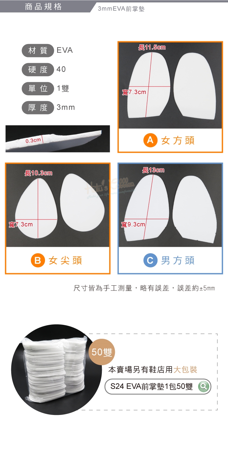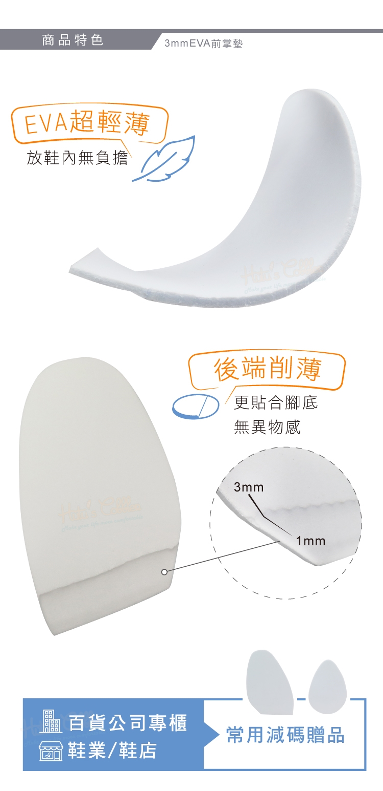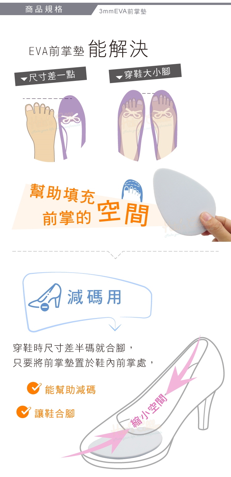 EVA前掌墊能解決尺寸差一點、穿鞋大小腳,幫助填充前掌的空間