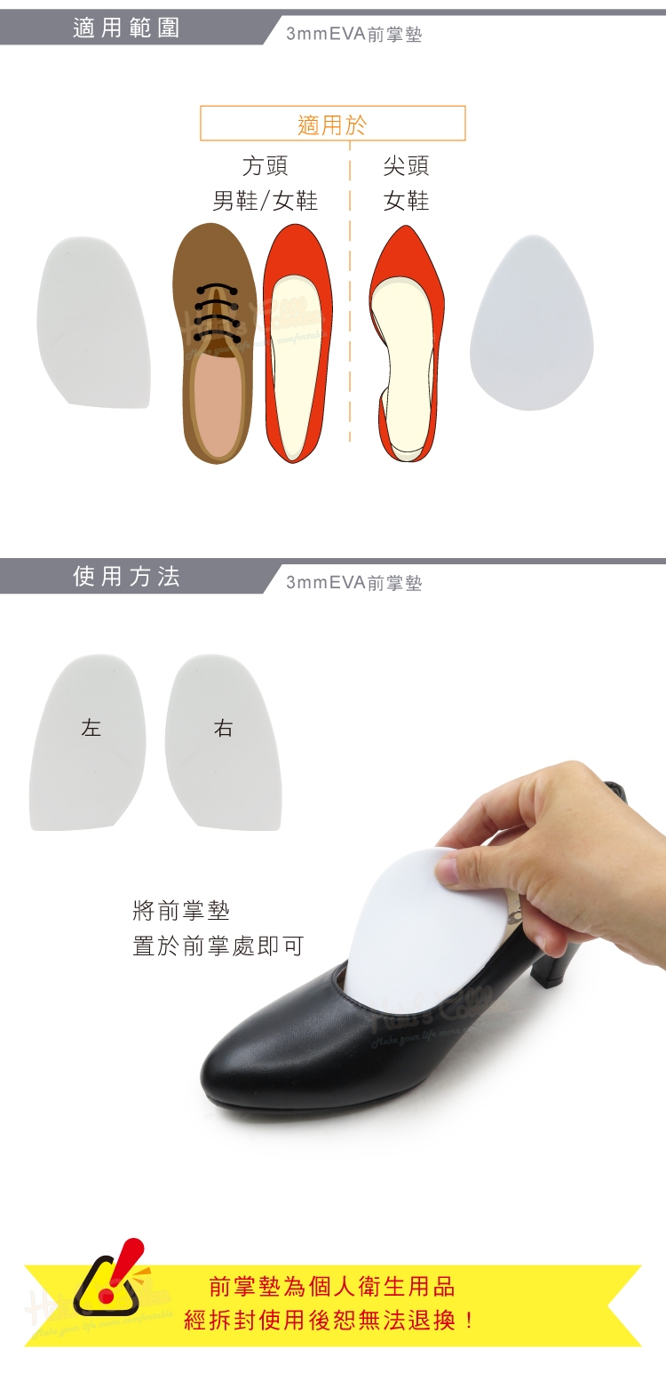 前掌墊為個人衛生用品,經拆封使用後恕無法退換!