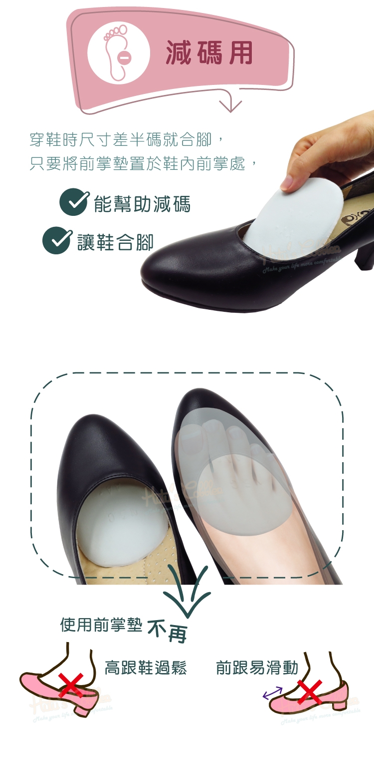 使用前掌墊不再高跟鞋過鬆、前跟易滑動