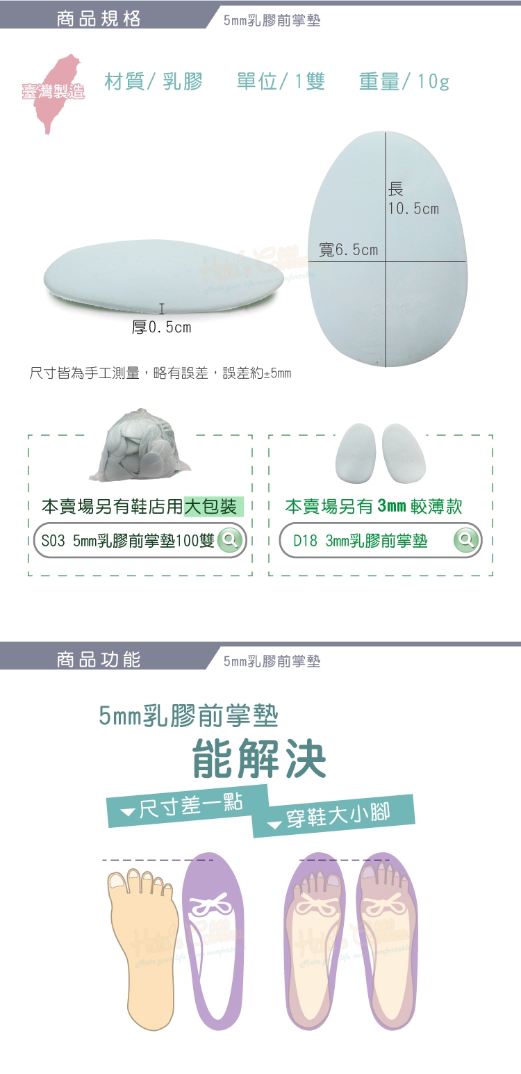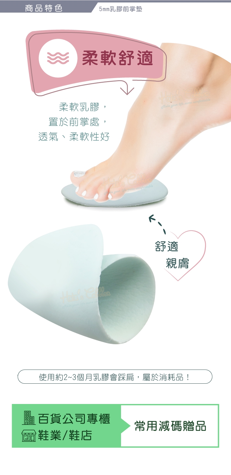 5mm乳膠前掌墊能解決尺寸差一點、穿鞋大小腳