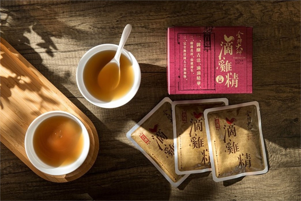 將雞精整包放進熱水中,隔水溫熱一分鐘即可飲用