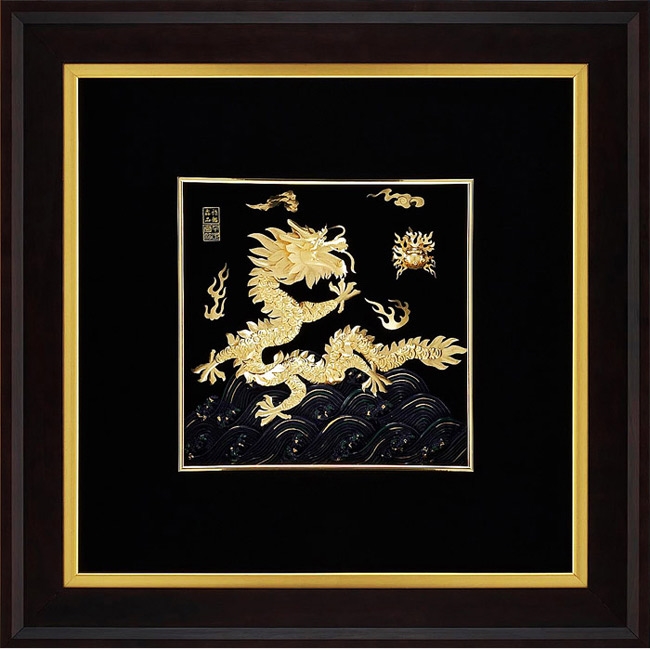 | 外徑 68 x 68 cm 隨作品附贈純金保證卡 ☆是市面上唯一兼具五行意含的掛畫~ 木:松木框(正財) 火:金珠(人緣) 土:龍屬土(偏財) 金:純金打造(智慧) 水:八寶立水紋(健康)☆黃金畫高純度金箔製作,金含量99.9%,永久不褪色沒有保存的問題與困擾~經工業技術研究檢驗認證《雅鑑鑫品》商標註冊確保您所購買絕無贗品,敬請確認產品上《雅鑑鑫品》印鑑章及保證卡。 龍居中國四靈之首,龍,除了代表權威之外,也是富貴吉祥的象徵。 居家風水擺設金龍能增加祥瑞之氣~~ 經常運用於招貴人、升官,化煞,避小人,更有助於事業發展順利,得貴人相助而招來財富。 ☆龍為治水之神,擺放在陽宅裡,除了可以招財、招貴人及防小人之外,還可以為人們消除煩惱,實為鎮宅、旺宅之寶。 1.五爪金龍 我們的金箔龍除了材質的特殊性之外(使用黃金),也為五爪金龍。 自古以來五爪金龍專為帝王使用的印記,一般朝臣只能使用四爪之蠎,五爪的龍才是真正含有帝王之氣的真龍。 2.老子道德經 老子道德經貴左章提到,「君子居則貴左、用兵則貴右」,意指在太平盛世時,以左為用,在戰爭時,以右為用,所以我們也可以引申為文武百業中,文的行業(如教授、文書、行政等)宜用右幅,武的行業(如行銷、業務、電子、金融)宜用左幅。若行業別兩者兼具,則兩幅皆可一起使用。 3.周易中的”升龍” 本產品的特色另一個重點是,龍頭朝上。龍頭朝上符合易經中的乾卦,九五爻的爻辭為「飛龍在天」。升龍相對於降龍,只有天子才可以使用升龍的龍圖騰,一般朝臣只能使用降龍,表示天子至高無上的身份。 4.八寶立水紋 八寶立水紋自古以來,多半都使用在龍袍上,可取其統一江河、一統天下之意,也可取其祥瑞吉慶之意;另外水為財,八寶立水紋的財氣,比一般的祥雲更為強大,一般的龍畫像,較難看見這種設計,擺放於陽宅中,富含龍氣、財氣、貴氣及帝王之氣。 5.風水上使用 在風水上使用風水龍,有幾個位置適合擺放: a、旺宅氣。陽宅要住得安穩,強調的是平衡,但現在很多陽宅的設計,常會出現左高右低或右高左低的情形,通常出現這種狀況時,我們會利用風水來,來提升低的那一邊的宅氣,因此建議若出現左高右低時,宜擺放右幅;出現右高左低時,宜擺放左幅,來達到陽宅的平衡,讓居住者可以提升宅氣,住得平安喜樂。 b、以玄關為準。由大門看向客廳,開門後,若客廳在左,則請擺放左幅;若客廳在右,則擺放右幅。重點在於讓龍頭朝向外面馬路來水的地方。風水學中,龍不離水,因此要讓龍可以達到招財招貴人的最佳效果時,務必要讓龍頭朝外。 c、因為龍水不分的原則,若陽宅中有安置魚缸的話,可以將畫放在魚缸之上,左右皆可,可以達到加倍的效果。 d、若在陽宅的外格局中,有警察局或法院、看守所之類具肅殺之氣的場所時,宜擺放金箔龍,可以化解肅殺之氣。若有寺廟、道場、教會等修行場所時,因為這些地方具孤絕之氣,也要擺放金箔龍,來化解其煞氣。這兩種煞氣的影響,都會讓住在其中的人,產生偏激、孤僻的想法,而讓貴人遠離,所以金箔龍除了可以化解煞氣外,還可以改善居住者的人際關係。 e、因為龍氣所在的地方,人潮也會特別多,所以生意場所若可以擺放一對金箔龍的畫,除了可以聚人氣,也可以聚財水,達到生意興隆、門庭若市的效果。 6.財庫之用 命理中的四財庫為”辰、戍、丑、未”,其中以辰為首,辰就是龍,尤其是金龍,有其金財庫的意義。另外,常聽命理老師說”本命中沒有財庫”、或說”有財無庫”,擺放金龍,等於是自己為自己造一個財庫,無論在陽宅的客廳、書房或辦公室,將金龍掛在身後,象徵自己有財有庫且後有靠,加上黃金之氣的不斷加注,自可以讓主人財源滾滾、黃袍加身。 【藝術生活化】一直以來都是《雅鑑鑫品》所追求的目標,將傳統紙雕與高貴的金箔相結合、也一直是我們的願望。 《雅鑑鑫品》經過長時間的構思與研發,終於克服種種困難,推出《雅鑑鑫品》立體金箔畫系列產品。製作一幅立體金箔畫比想像中難多了,需要花上很長時間。首先要經過嚴格選材,取材,創意構思,完成素描稿,確定整體效果,再經過立體思維方式,將畫面分割成數以千計小塊,並運用傳統的剪、刻、捏、膠等不同手法,再經過上千次人手工序,嚴謹製作而成。