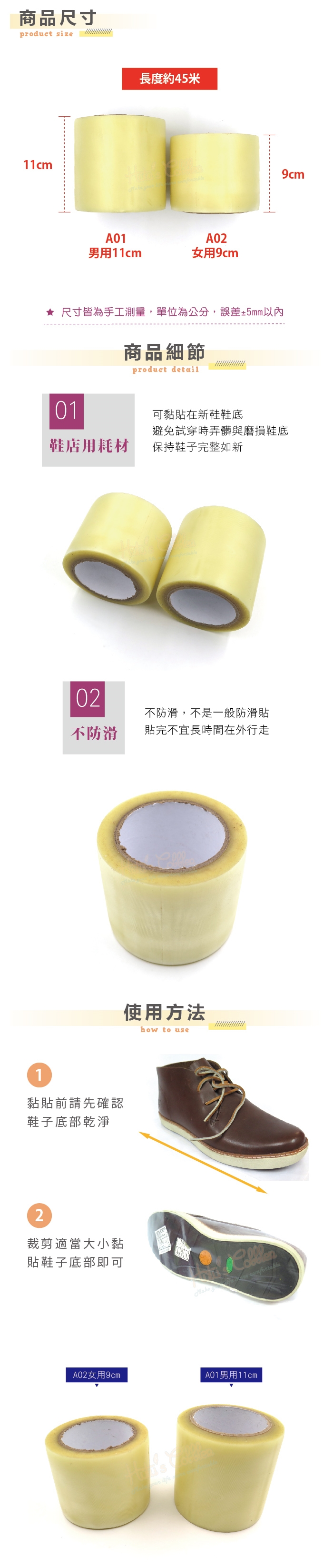 黏貼前請先確認鞋子底部乾淨,裁剪適當大小黏貼鞋子底部即可