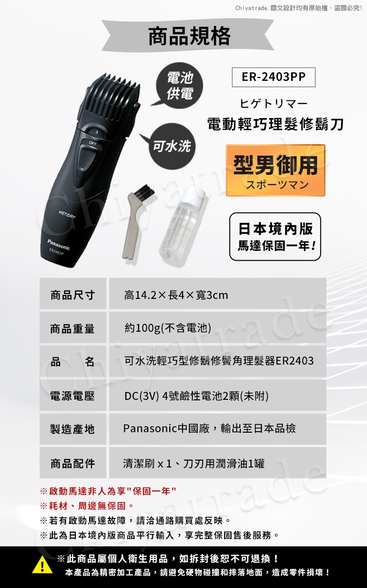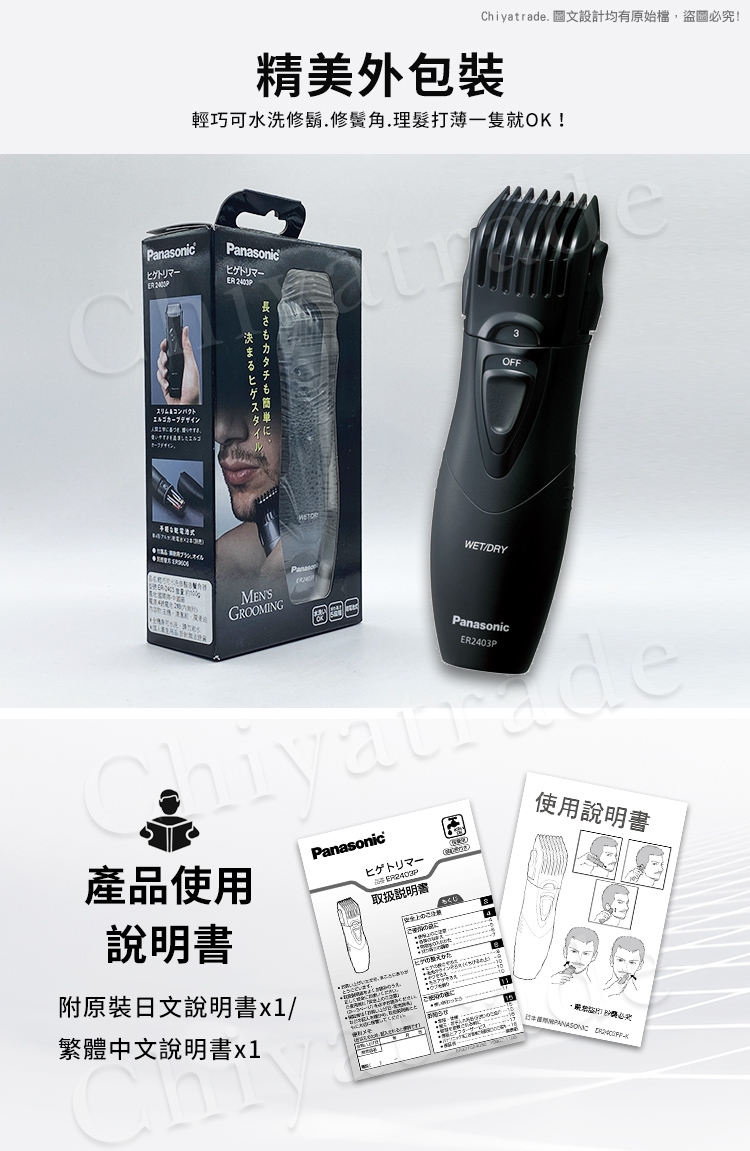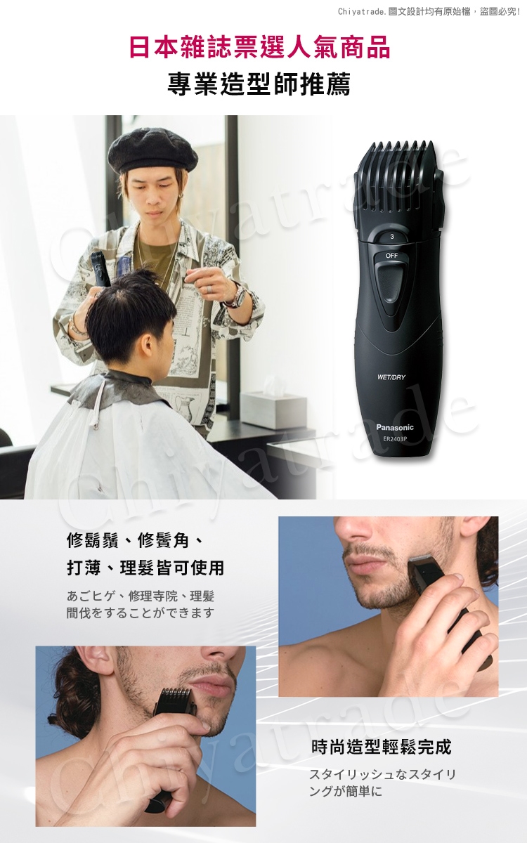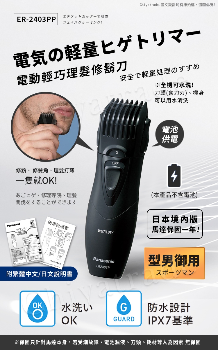 品名:Panasonic可水洗輕巧型修鬍修鬢角理髮器ER2403