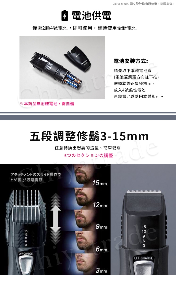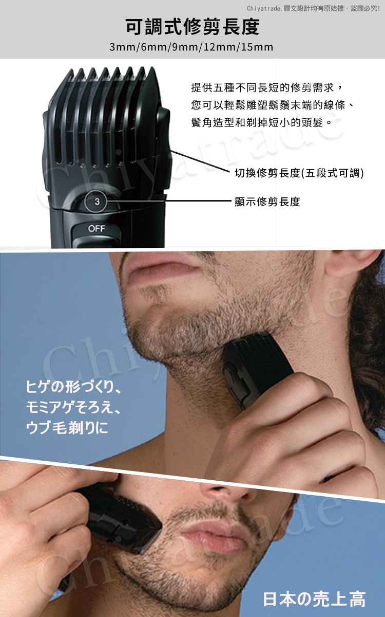 ●3mm、6mm、9mm、12mm、15mm的鬍子長度,創造自已的型男STYLE