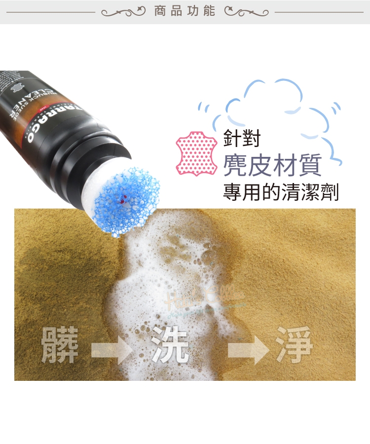 針對麂皮材質專用的清潔劑,深入皮層,操作簡單快捷