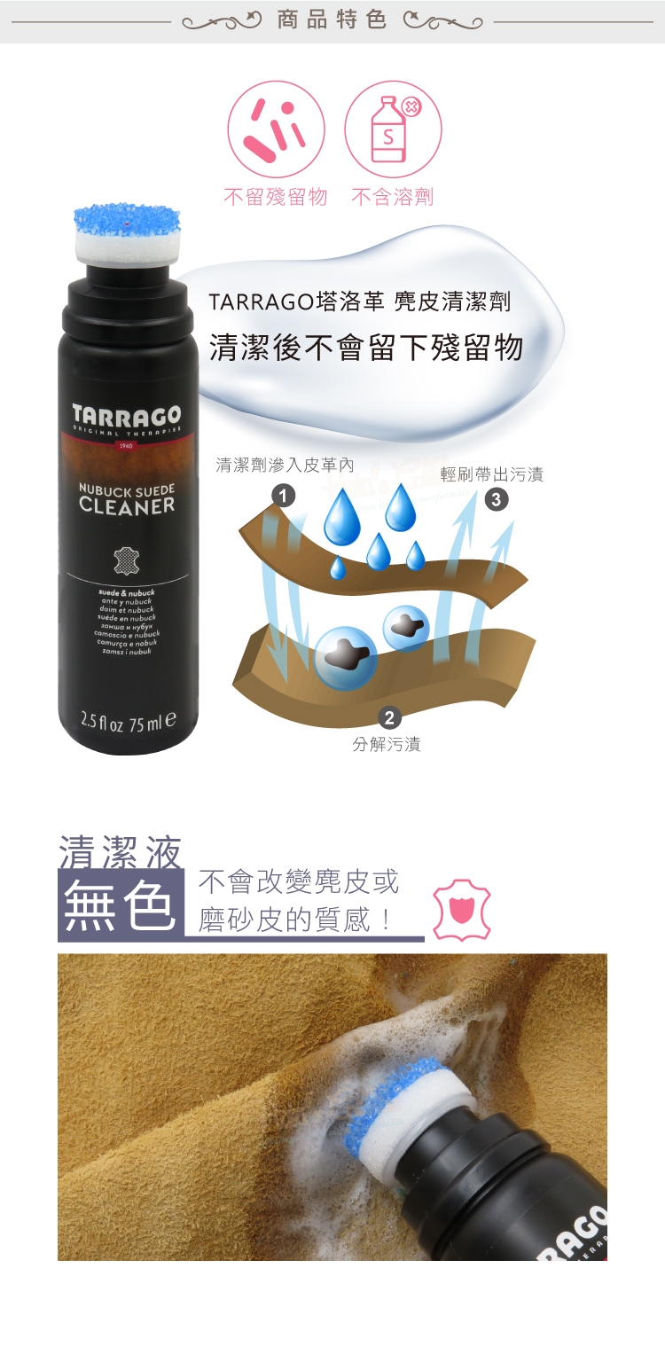 無色的清潔液,不會改變麂皮或磨砂皮的質感