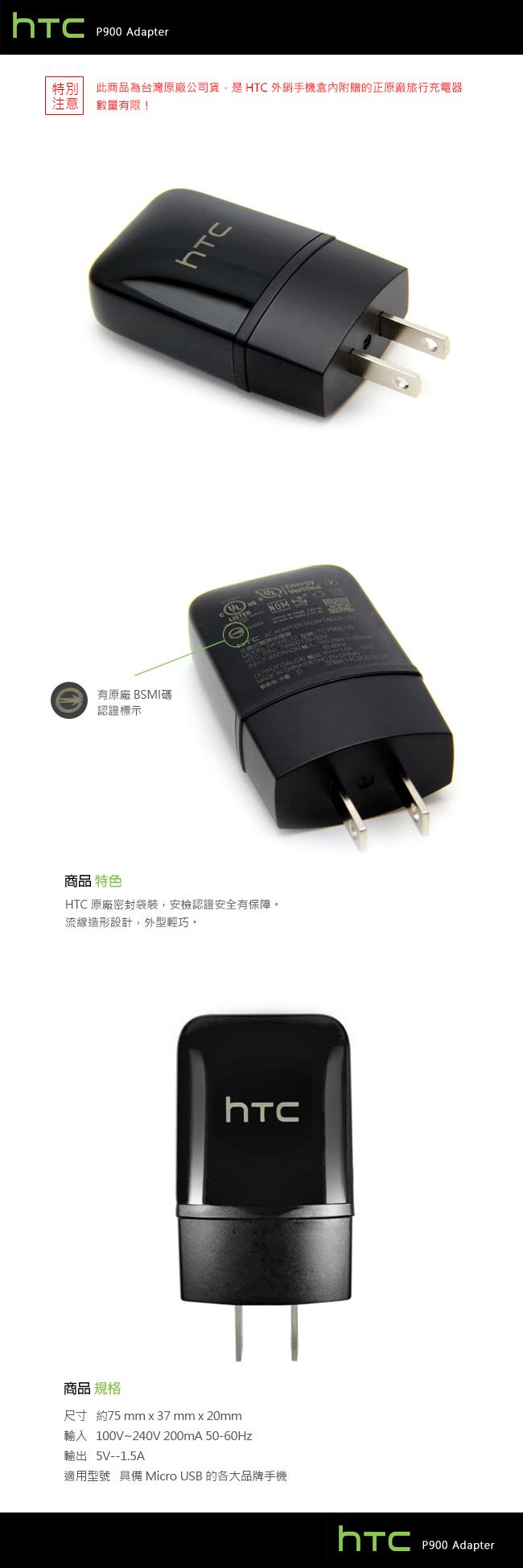 HTC TC P900-US 5V/1.5A 原廠旅行充電器 (台灣原廠公司貨-密封袋裝)