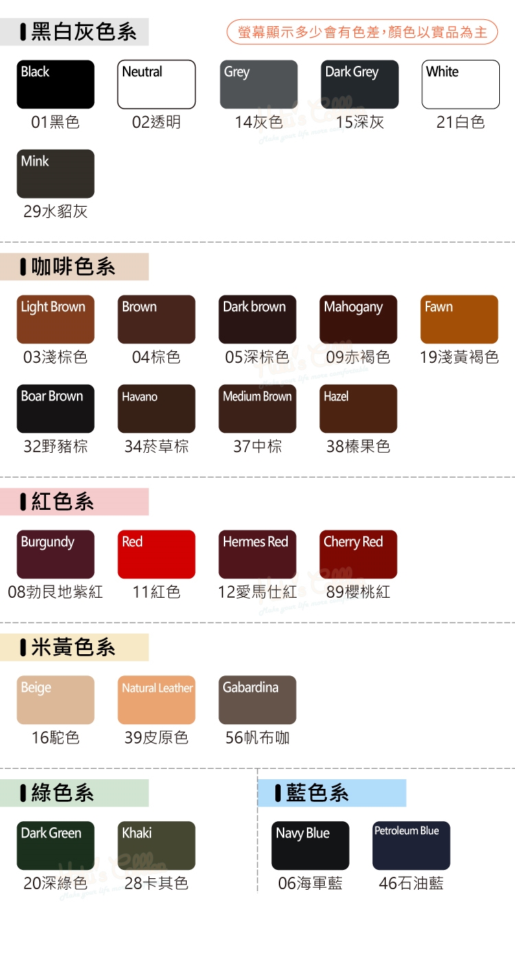 遮蓋擦痕:對於皮革輕微的擦傷痕跡,具有補色效果