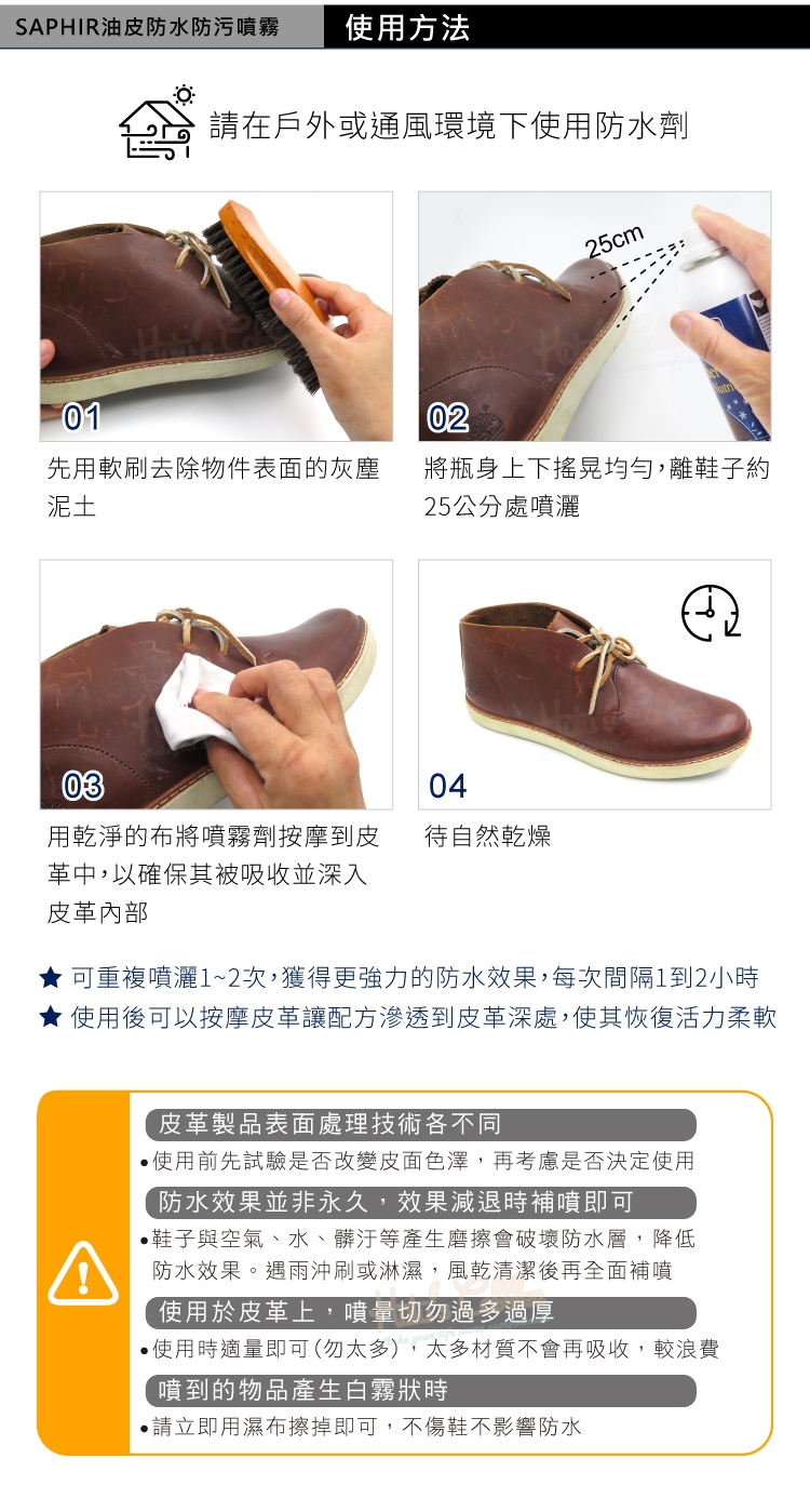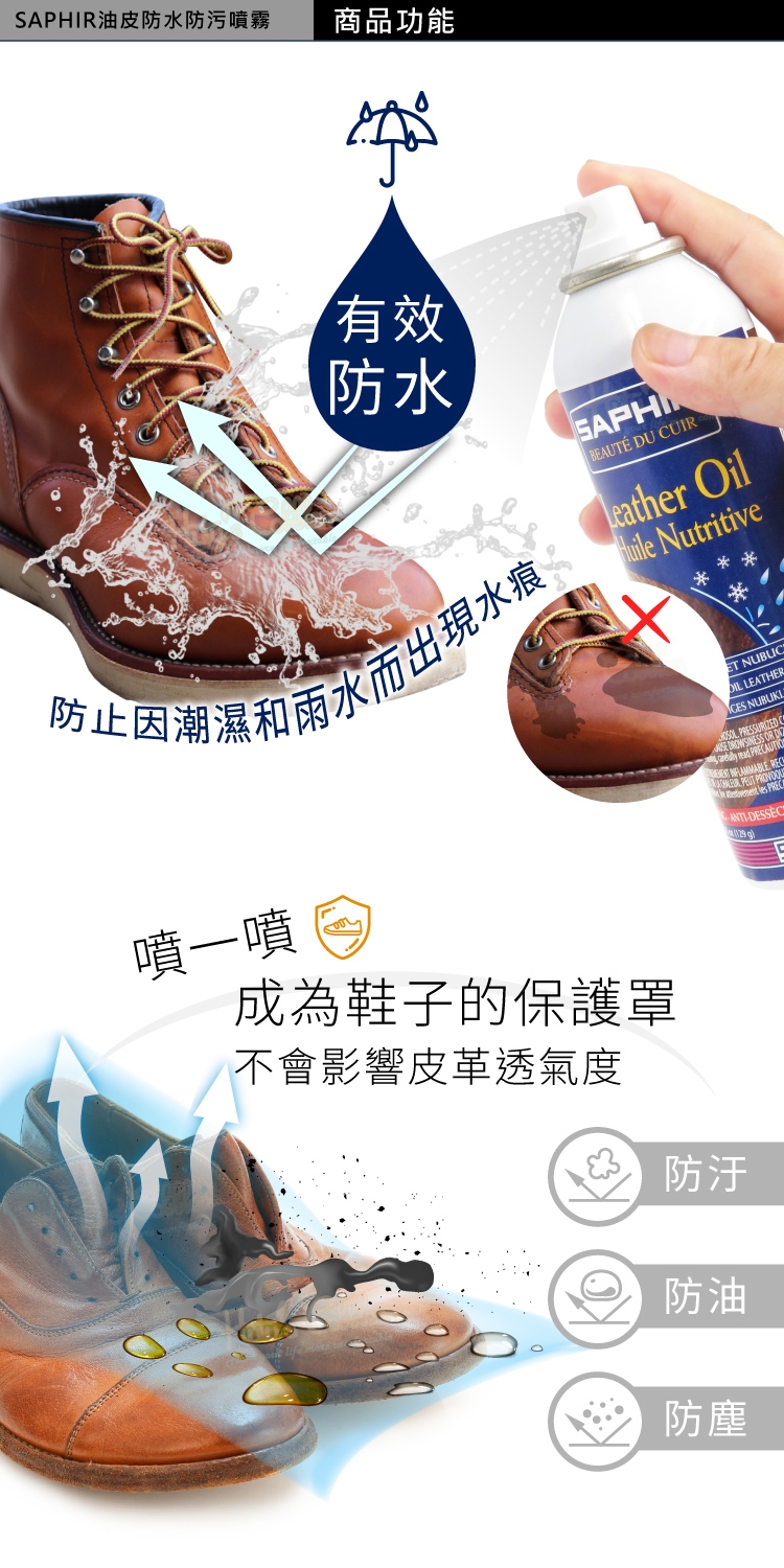 噴一噴成為鞋子的保護罩,不會影響皮革透氣度
