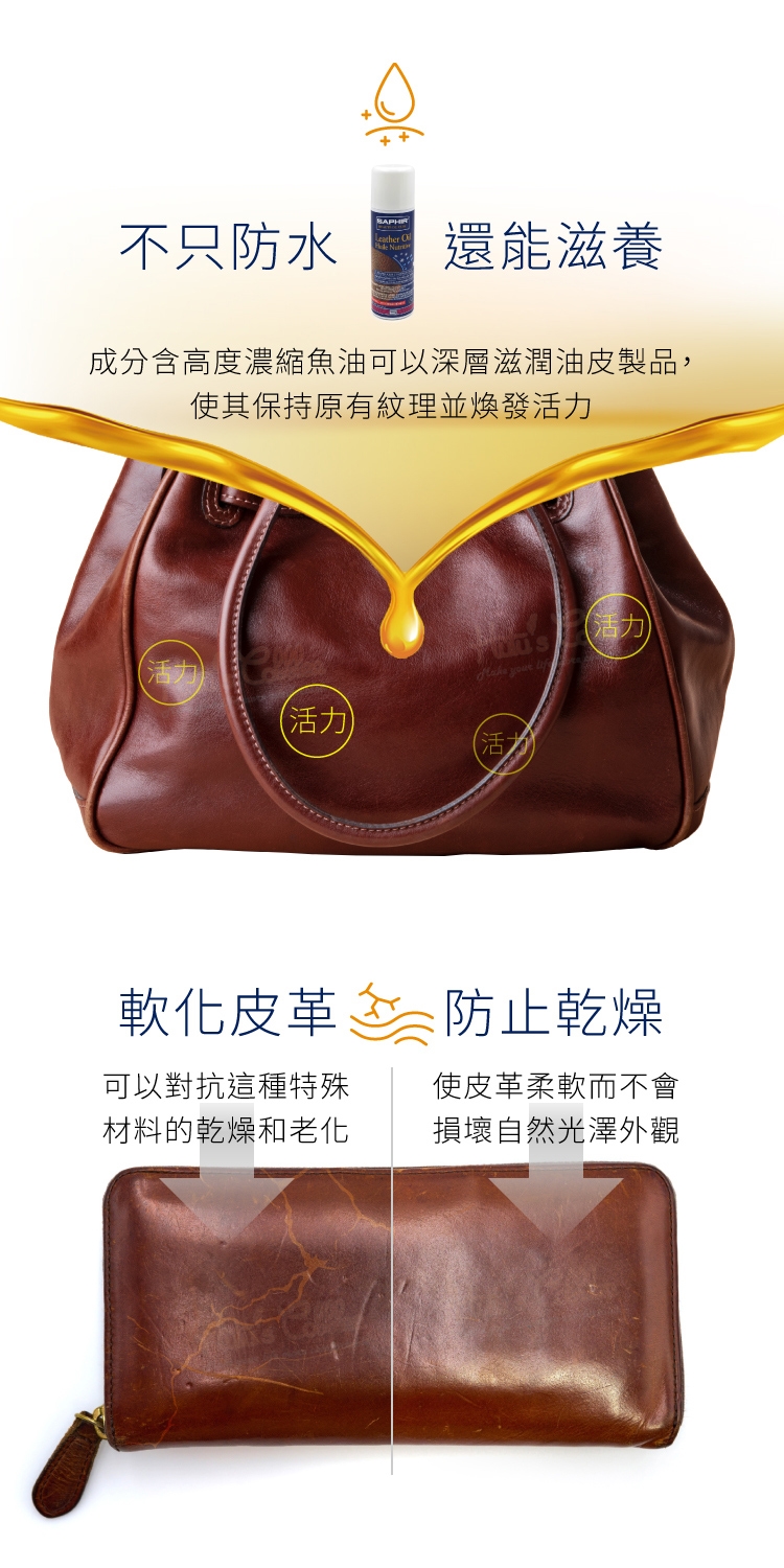 成分含高度濃縮魚油可以深層滋潤油皮製品,