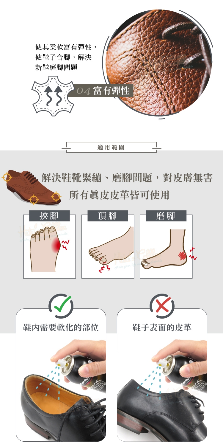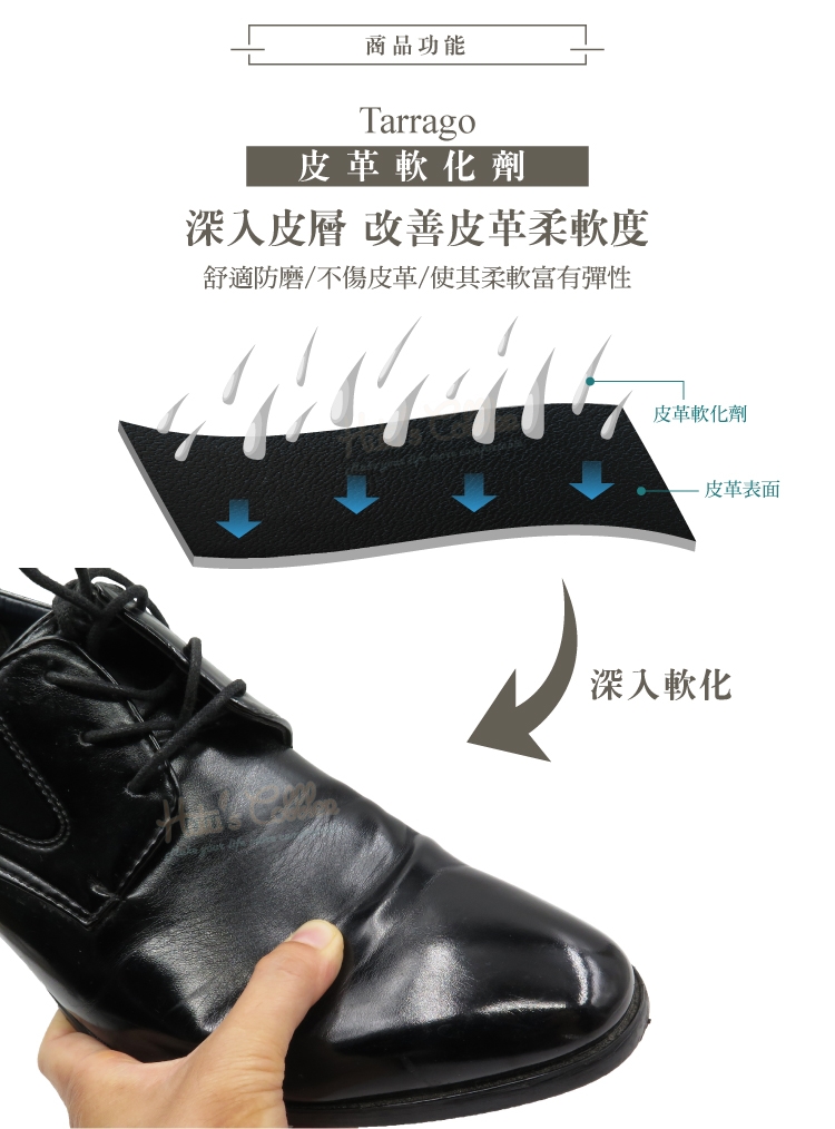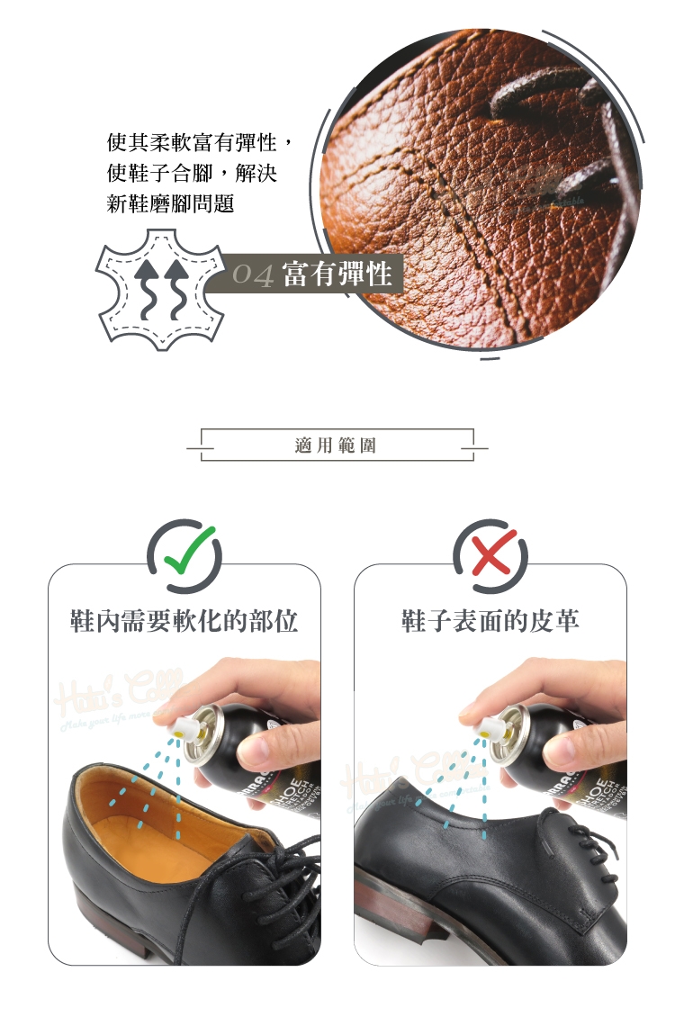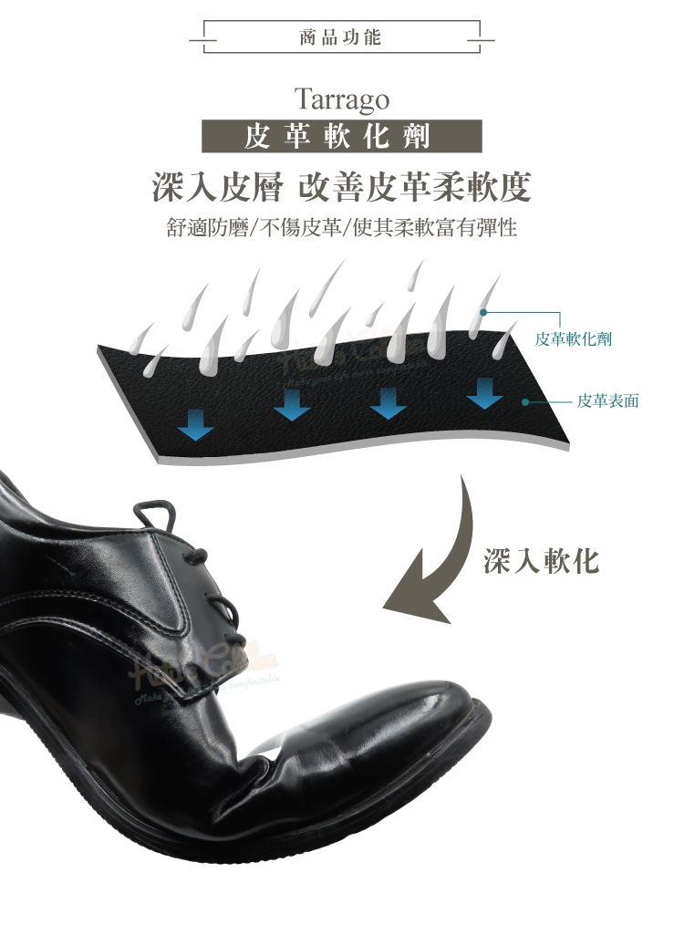 軟化皮革纖維,讓皮鞋立即柔軟好穿