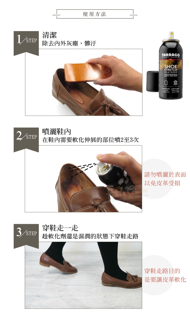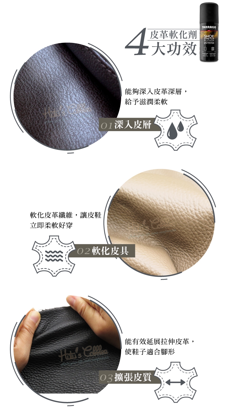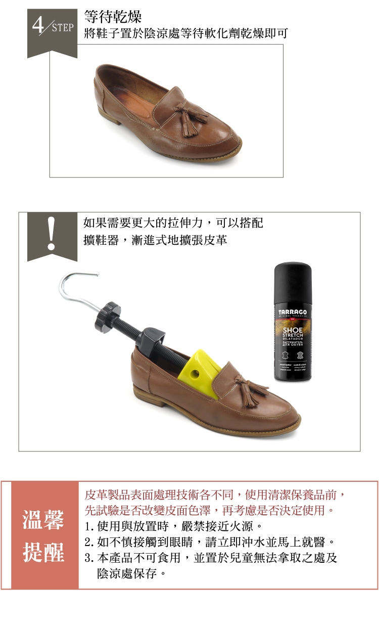 軟化皮革纖維,讓皮鞋立即柔軟好穿