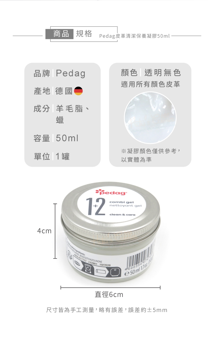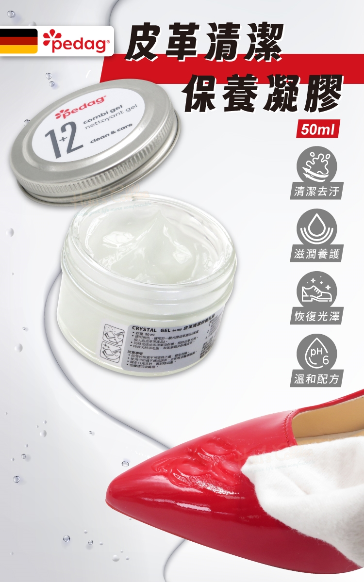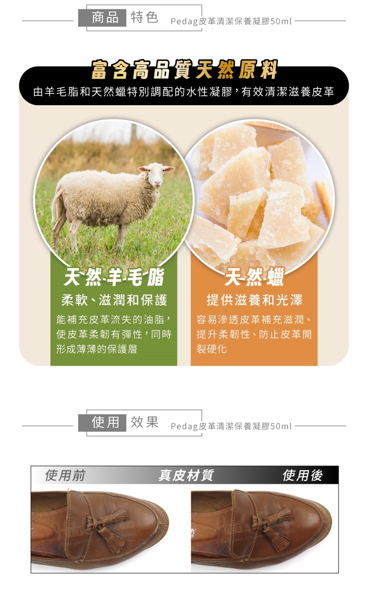 由羊毛脂和天然蠟特別調配而成的水性凝膠,有效清潔滋養皮革