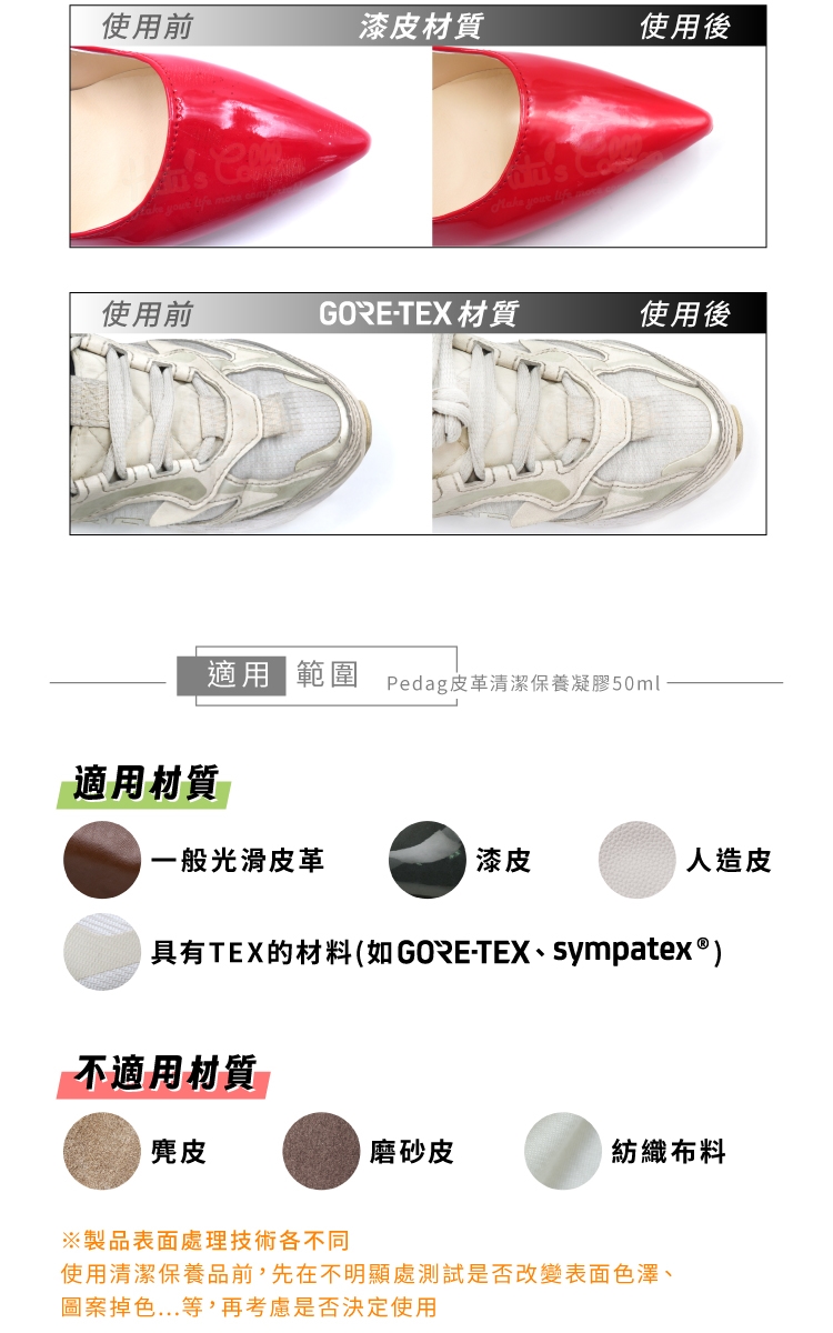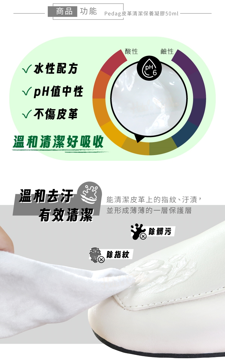 水性配方 pH值中性 溫和清潔好吸收 不傷皮革