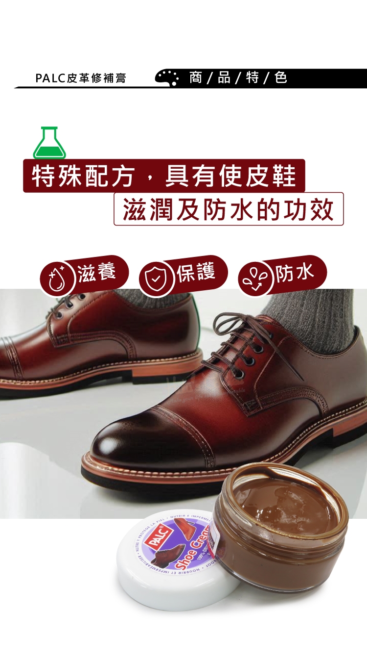 特殊配方,具有使皮鞋滋潤及防水的功效