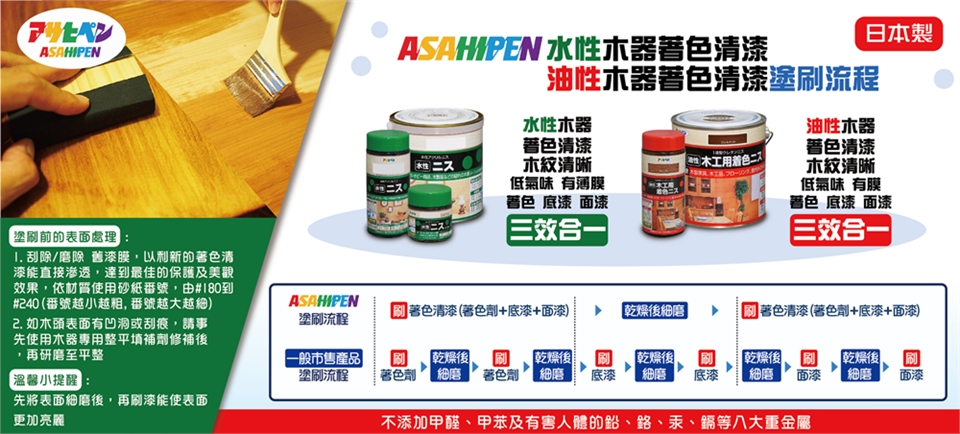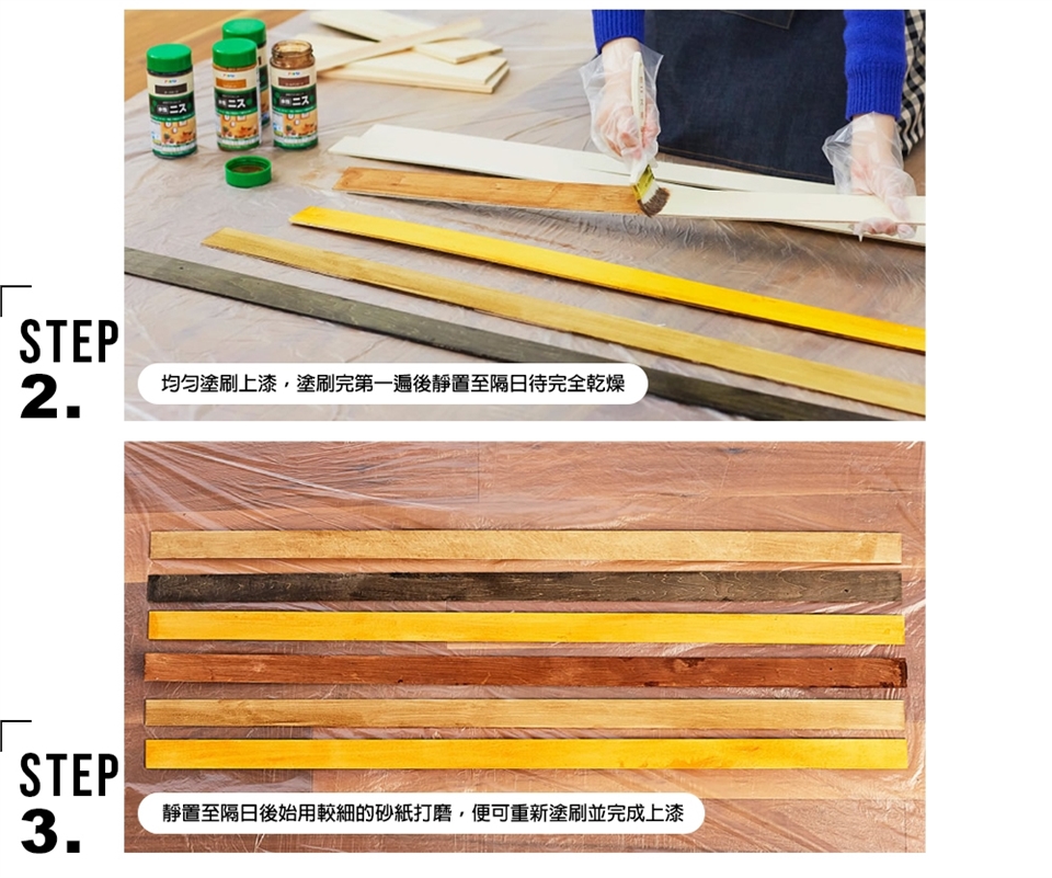 1.如能在磨好後,先使用“木器著色整平劑”先行打底後才開始塗刷,