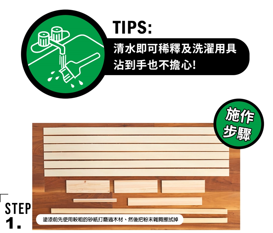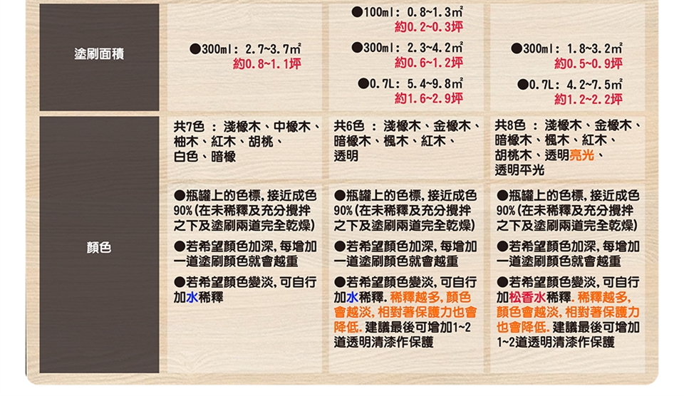 2.如欲加強刷塗刷面的木材豐滿度及厚實感,可另洽