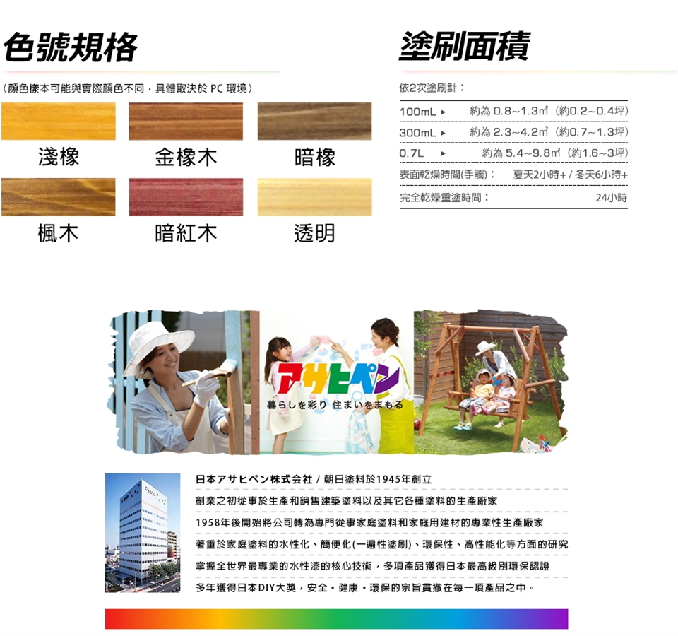 ※因材質及天氣情況不同會使塗裝面積、塗裝次數及乾燥和著色情況而有些不同。