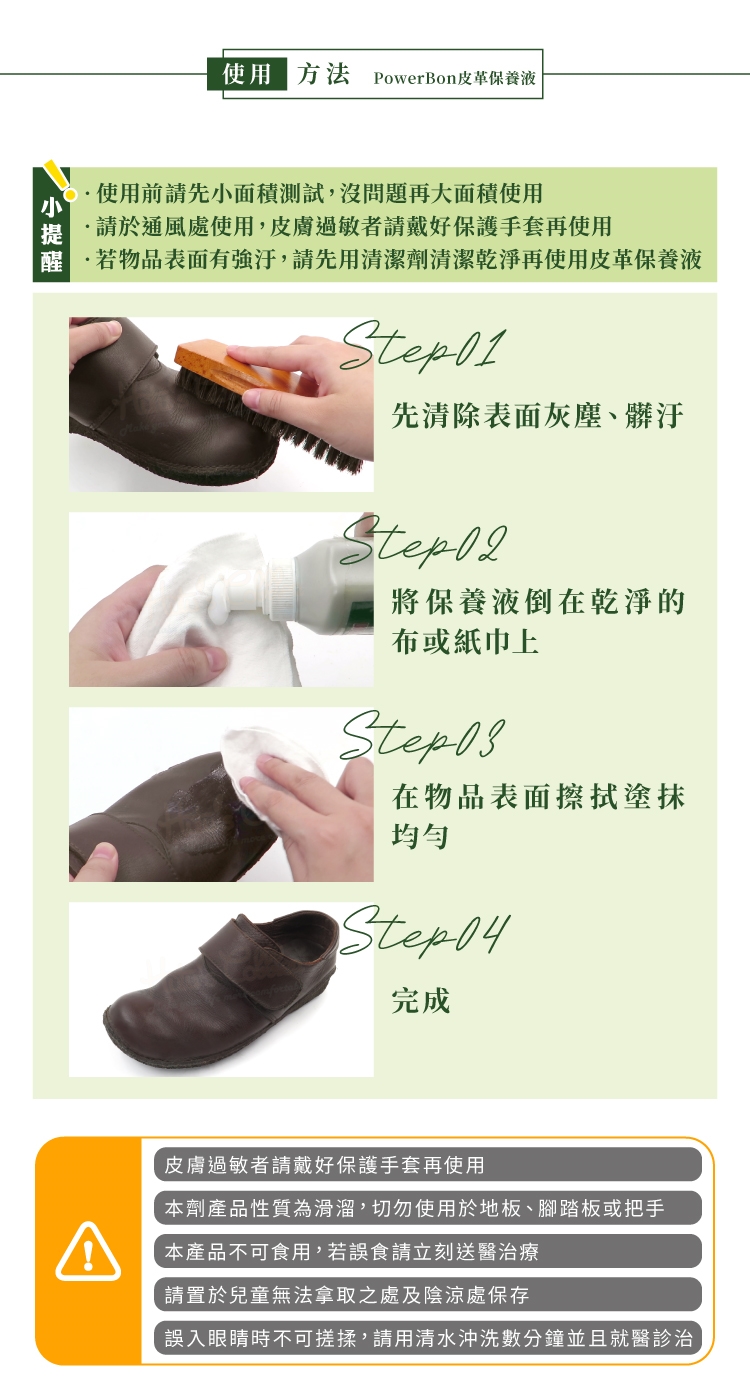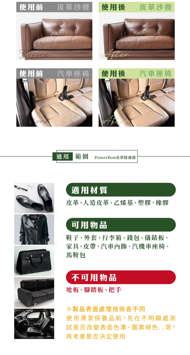 若物品表面有強汙,請先用清潔劑清潔乾淨再使用皮革保養液