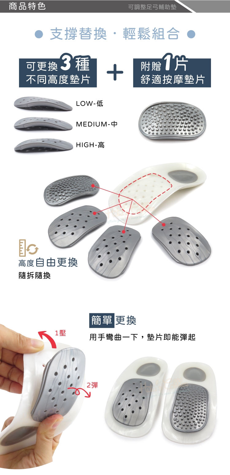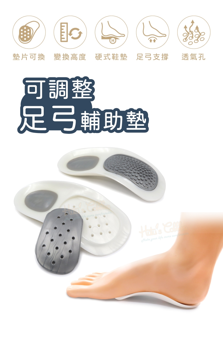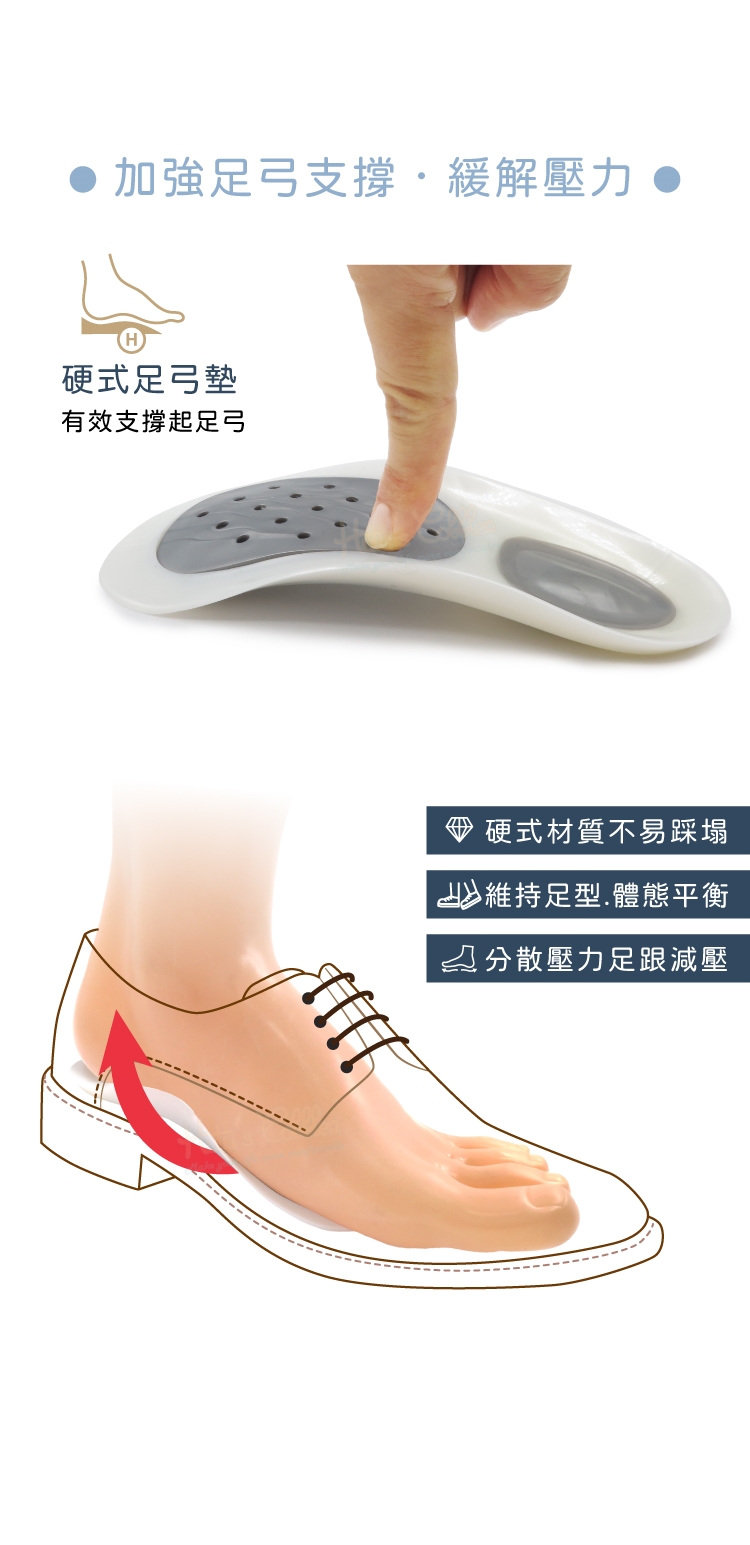 硬式材質不易踩塌;維持足型與體態平衡;分散壓力足跟減壓