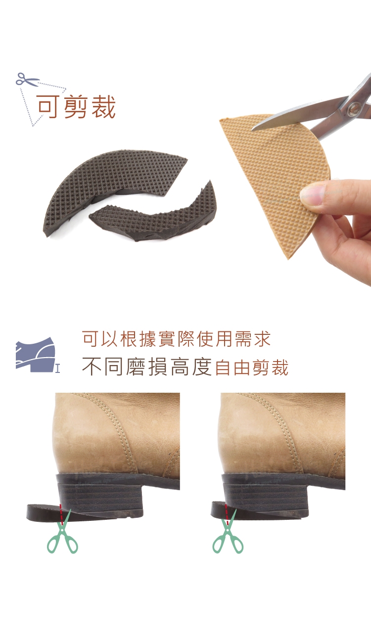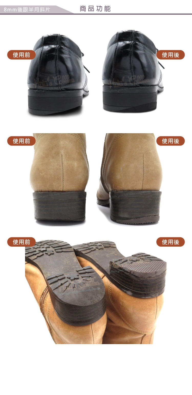 針對鞋跟內側及外側磨損修補,保持鞋底平整