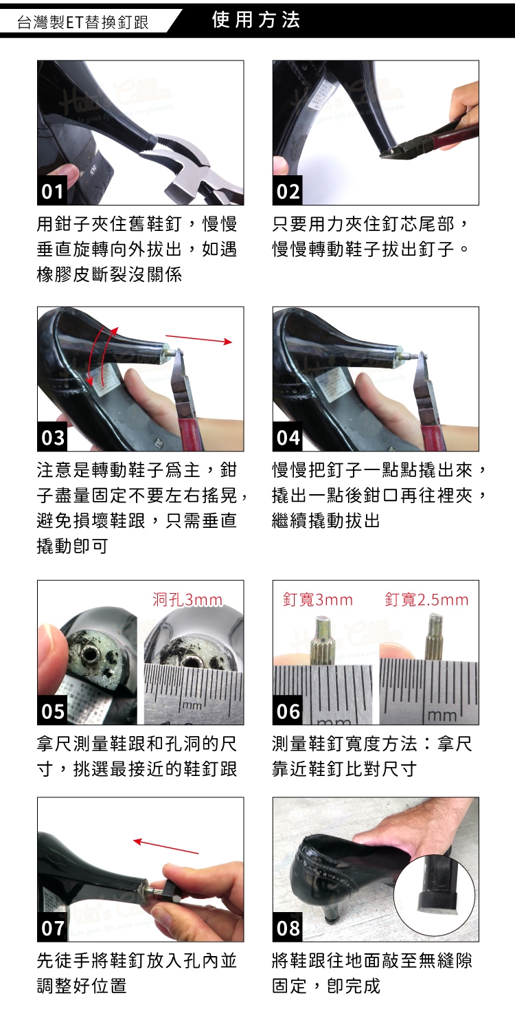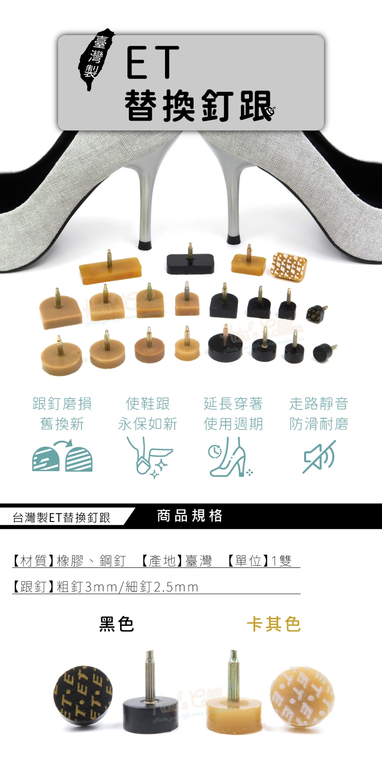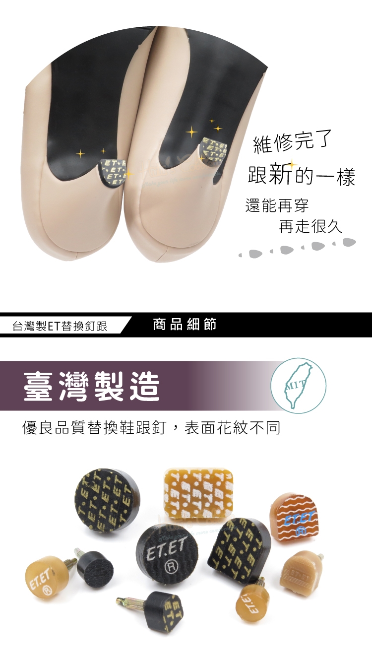 台灣製ET替換釘跟功能: