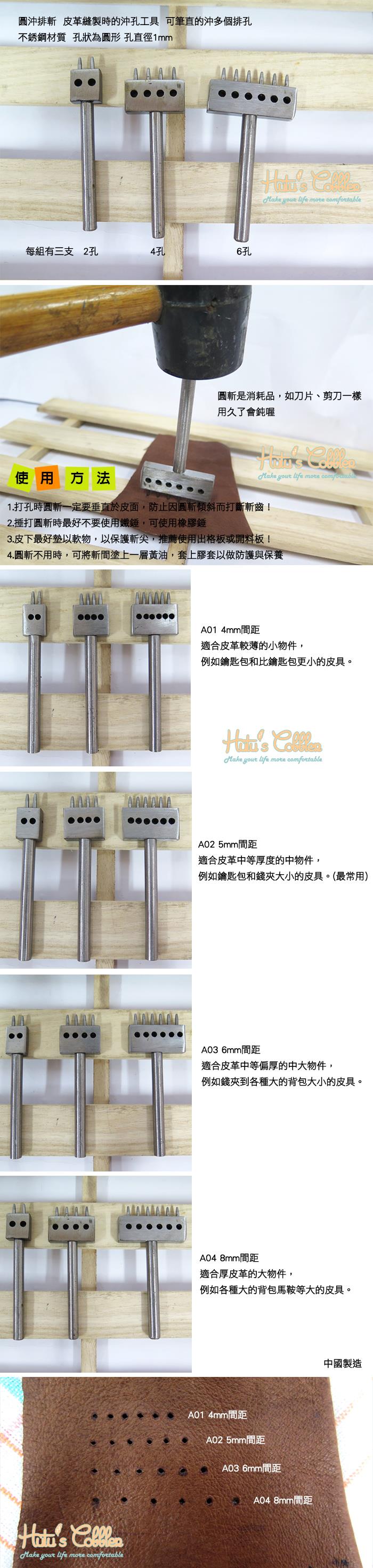 1.打孔時菱斬一定要垂直於皮面,防止因菱斬傾斜而打斷斬齒!