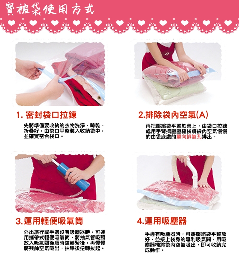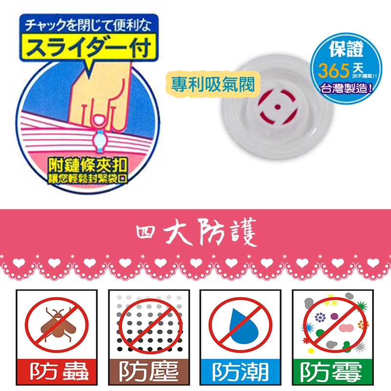 ■ 一般壓縮袋需一個月拿出檢查是否漏氣,百特製品可有效保存六個月以上