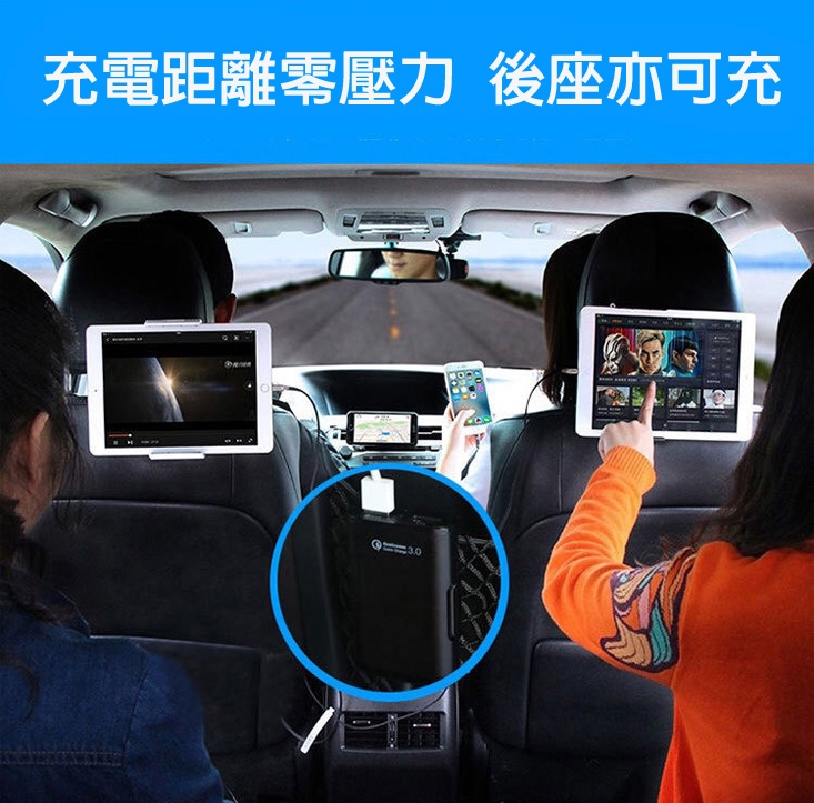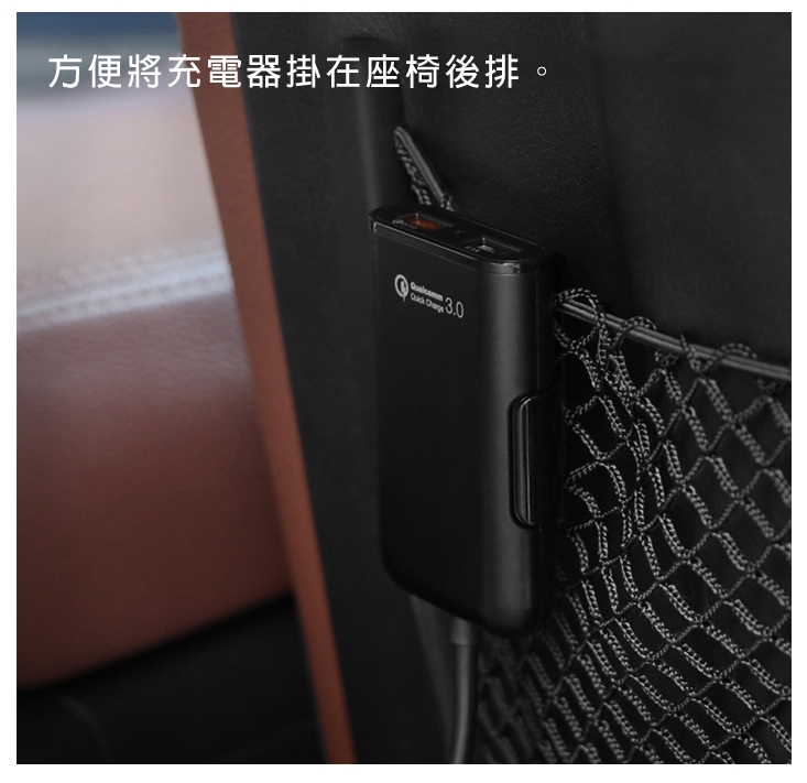 2.將背夾扣在後充背面,再將後充掛在前排座椅的背袋上