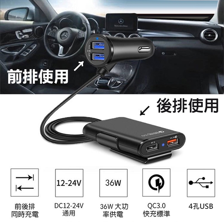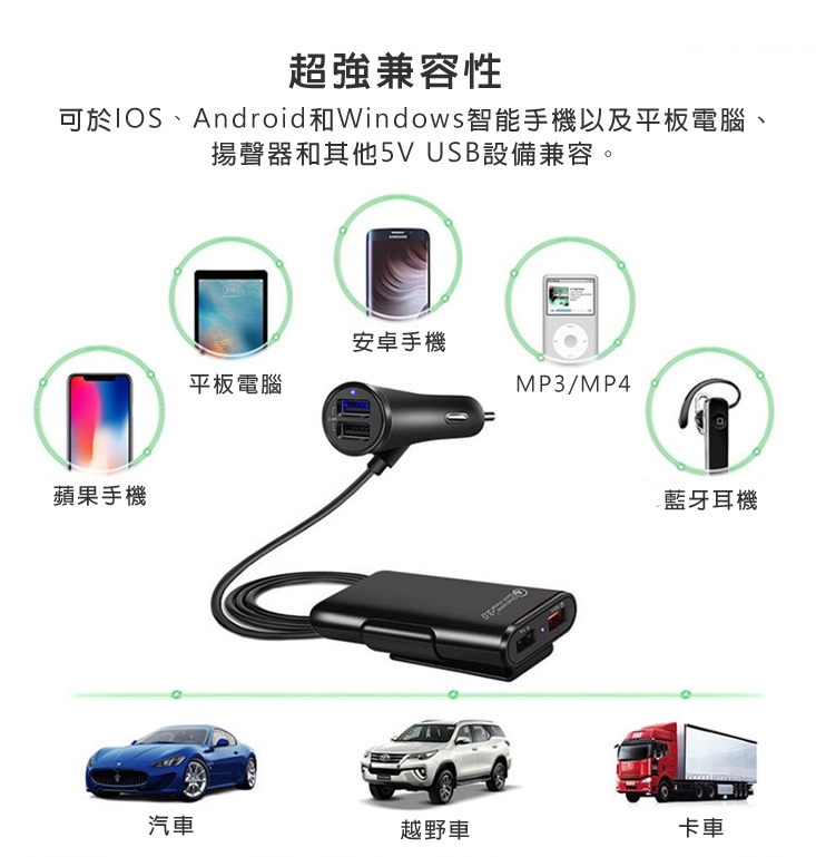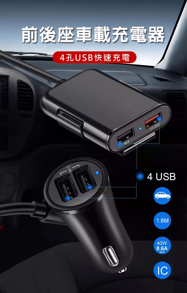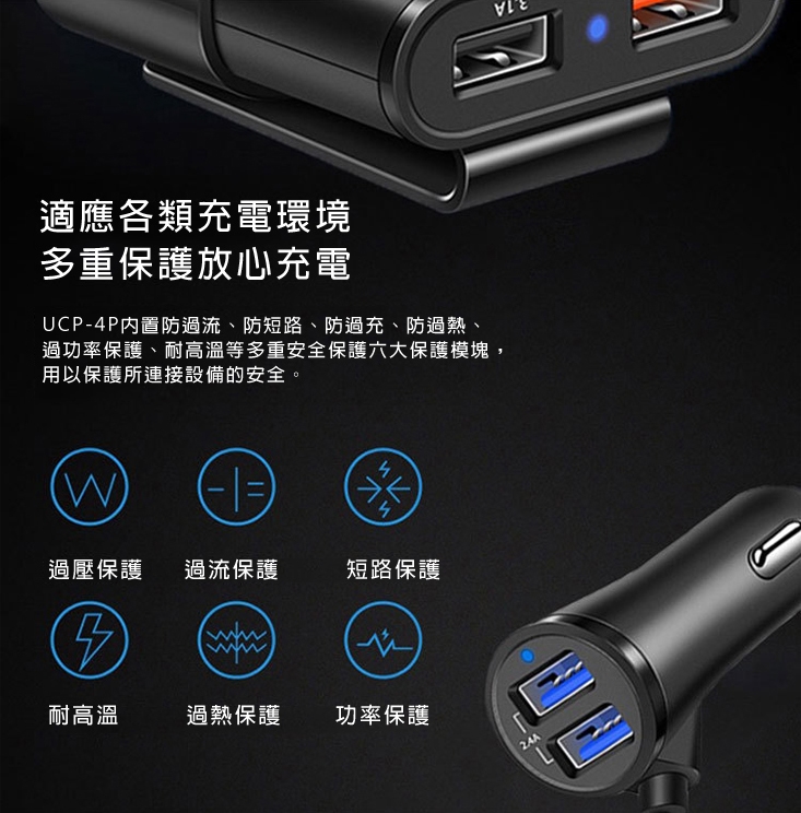 4.汽車啟動後將本產品的前充插入車內點煙孔插孔