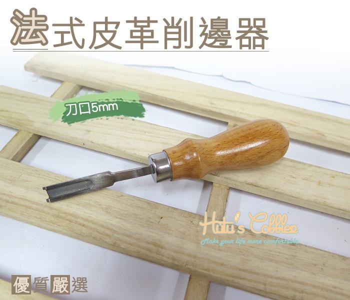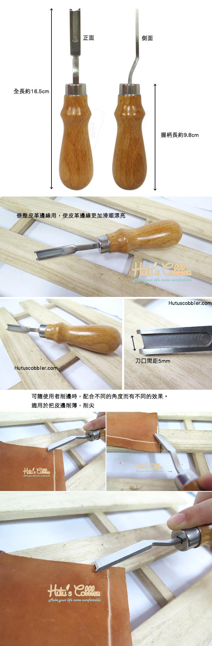 握好握柄,凹槽對準皮革邊緣,施力往前推,保持固定角度才會漂亮。