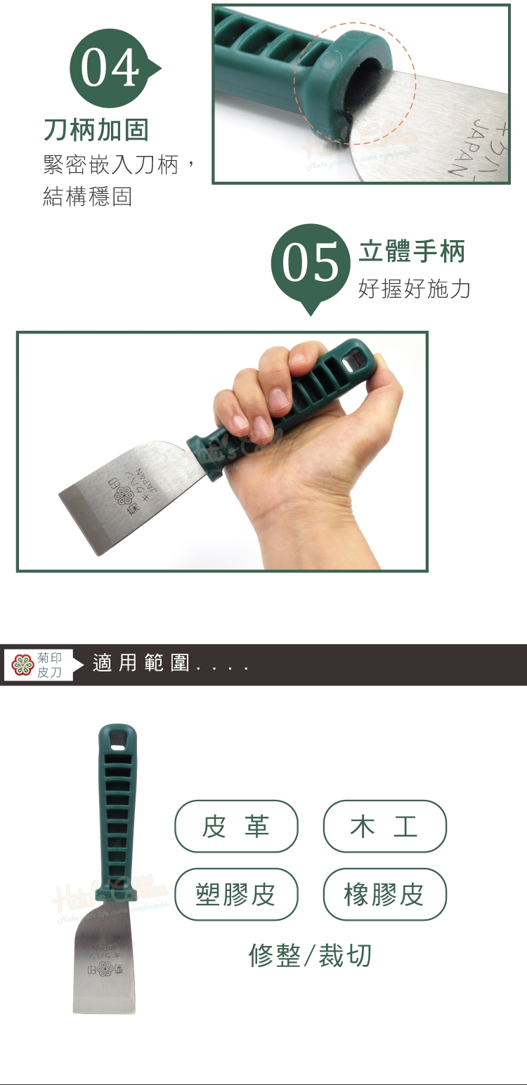1.斜鏟:用於皮革背面的修邊去薄,硬皮、軟皮削薄
