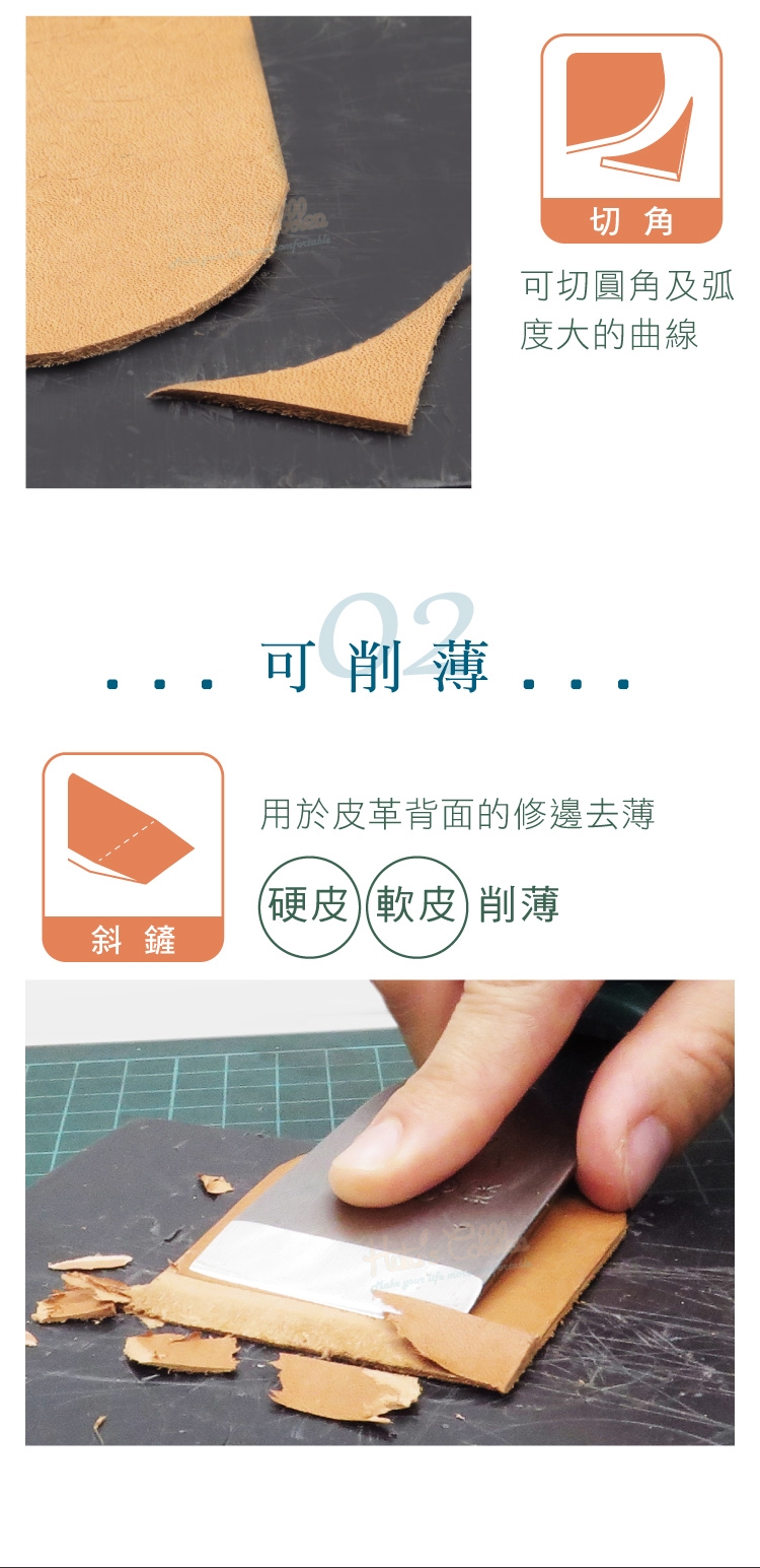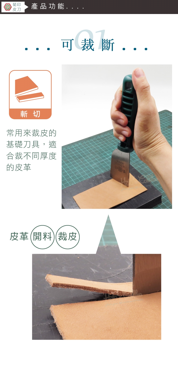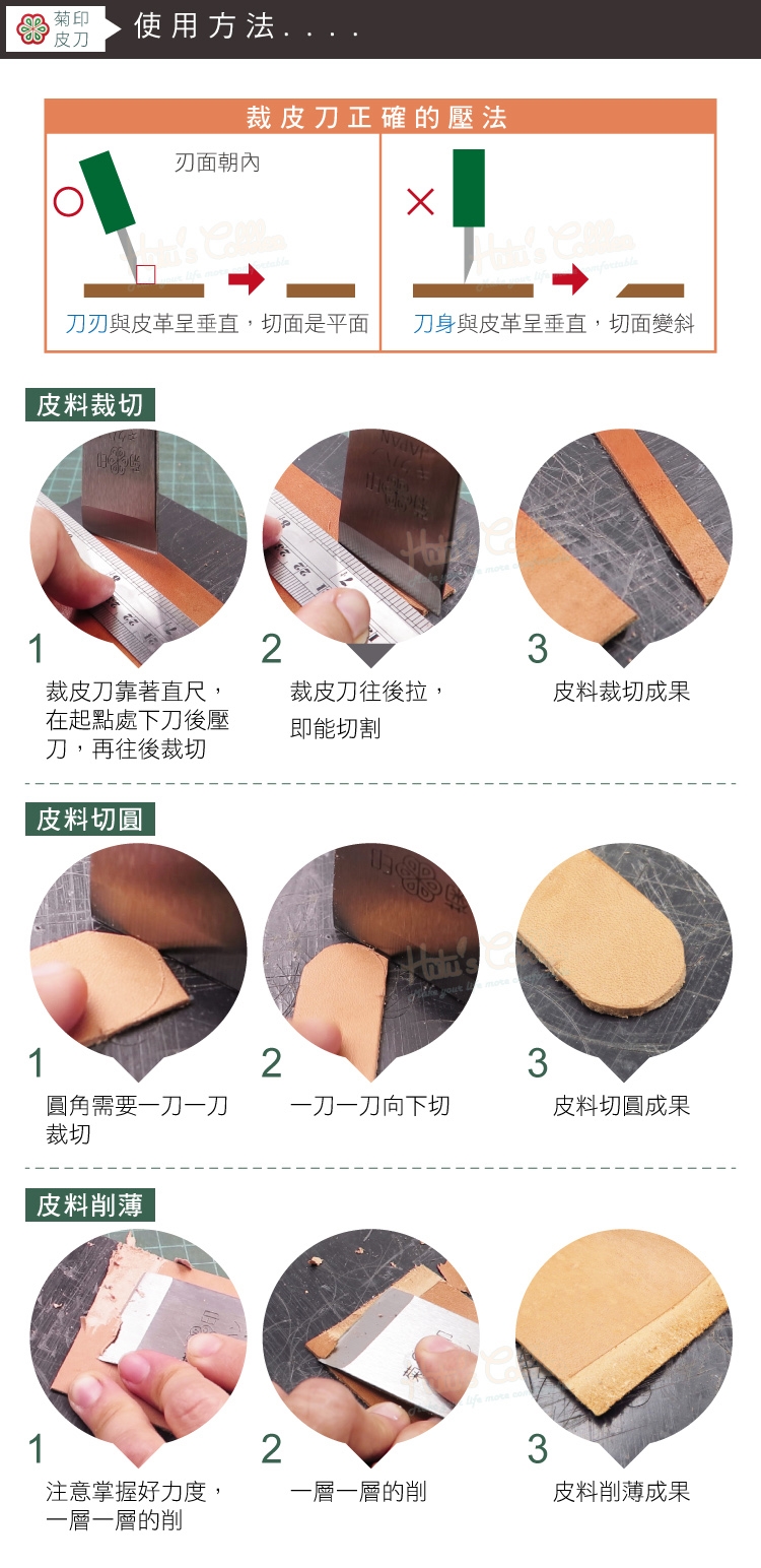 1.斬切:常用來裁皮的基礎刀具,適合裁不同厚度的皮革