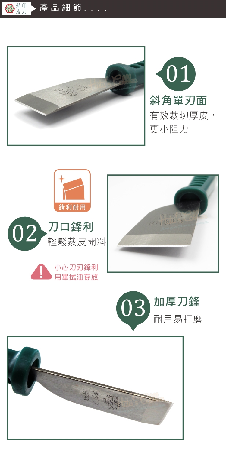 1.斜角單刃面:有效裁切厚皮,更小阻力